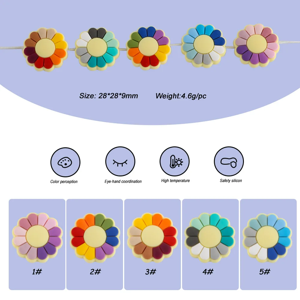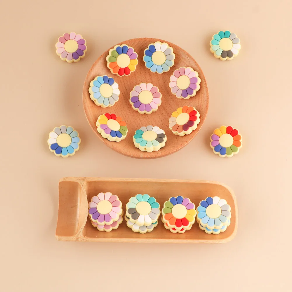 10 шт., силиконовые бусины в виде подсолнуха для прорезывания зубов
