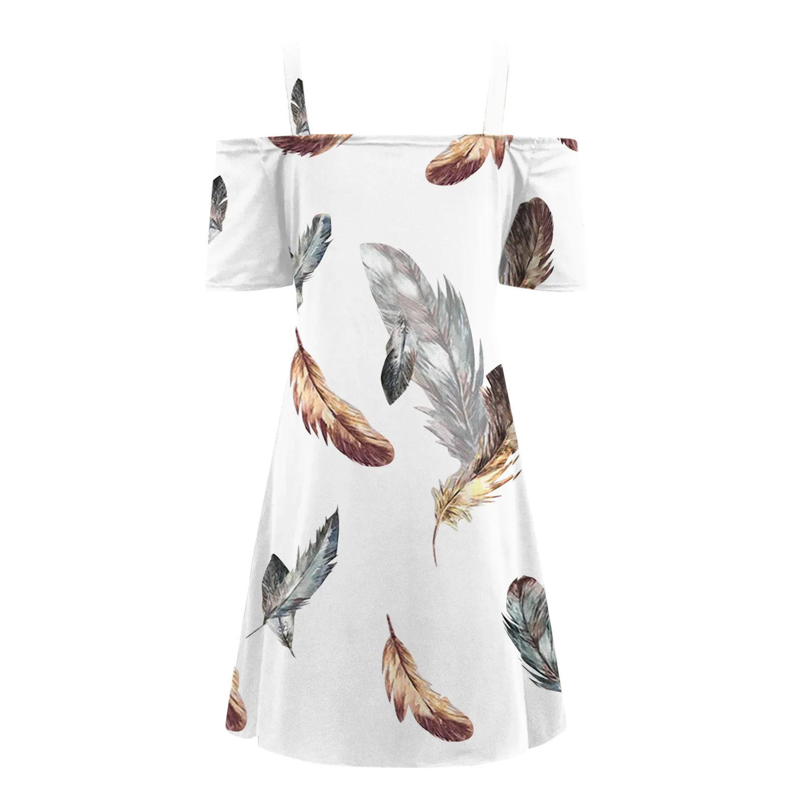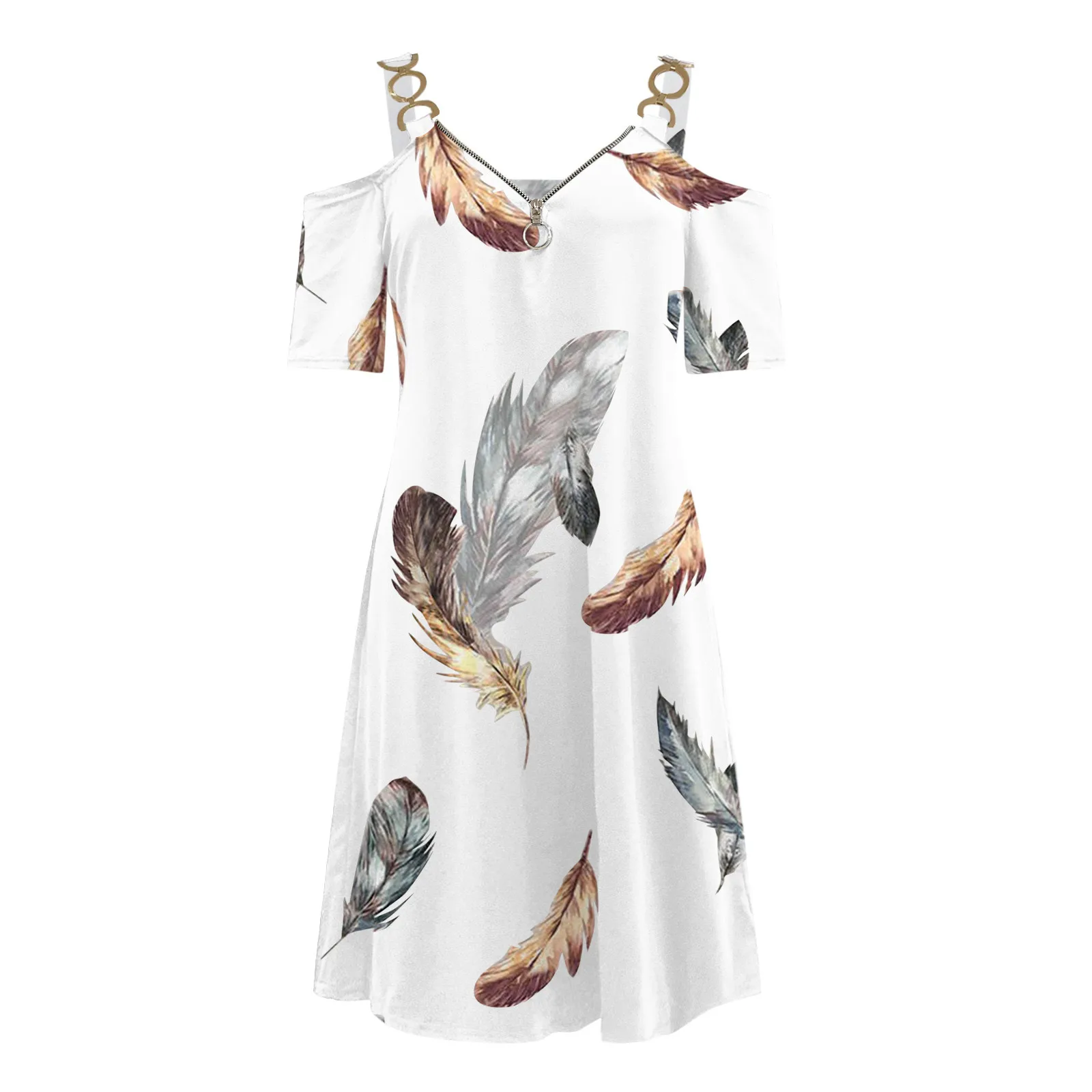 40 # элегантный металлический ремень платье для женщин платье на одно плечо с узором в виде перьев с v-образным вырезом, коротким рукавом, платья с открытой Молния сзади летнее платье 2021