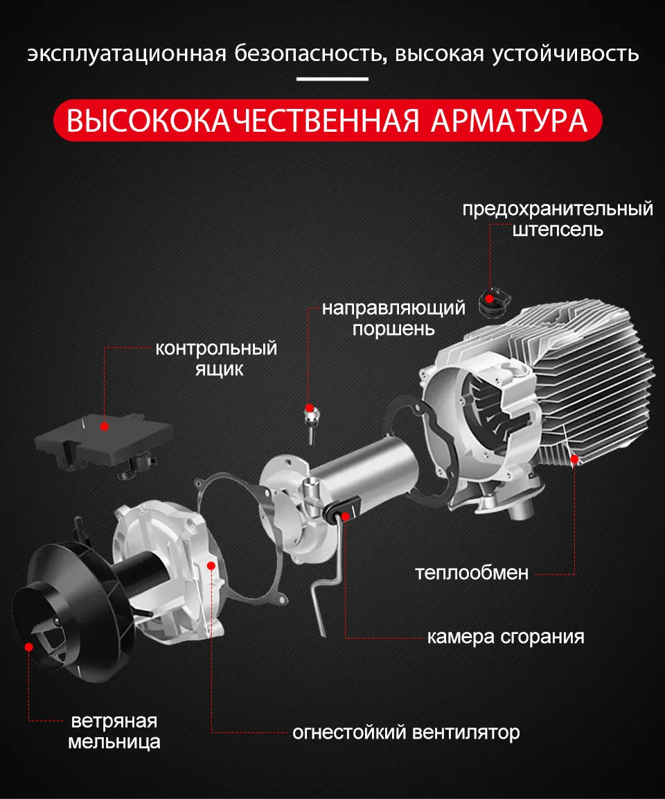 Особенности-Все в одном блоке, экономит место и легко перемещается.-Простота установки, удаления и обслуживания.-Избавьтесь от повреждений автомобиля, вызванных резким падением температуры.-Низкий уровень шума: снижение уровня шума при минимальном уровне шума.-Простая установка: компактный дизайн хорошо подходит для использования в различных узких пространствах.-Низкое потребление топлива и энергии в течение более длительного периода эксплуатации.-Плавный, автоматический комнатный контроль температуры с предварительной установкой температуры.-С непрерывным мониторингом и диагностической системой.-Топливо поставляется из собственного бака транспортного средства.-Применимо к: различным дизельным механическим транспортным средствам, таким как автомобили, автобусы, RVs, грузовики, инженерные транспортные средства и т. д.