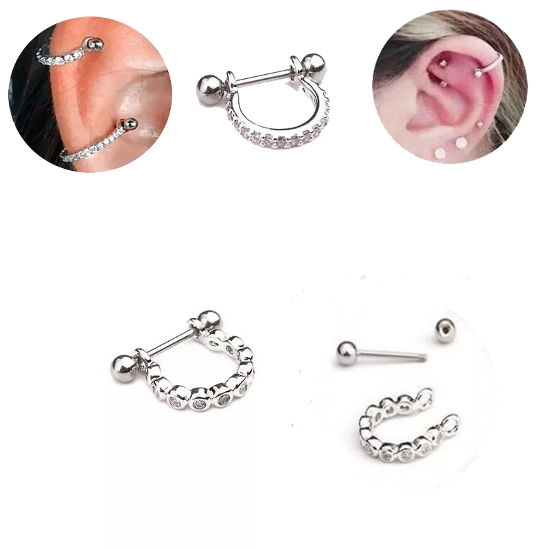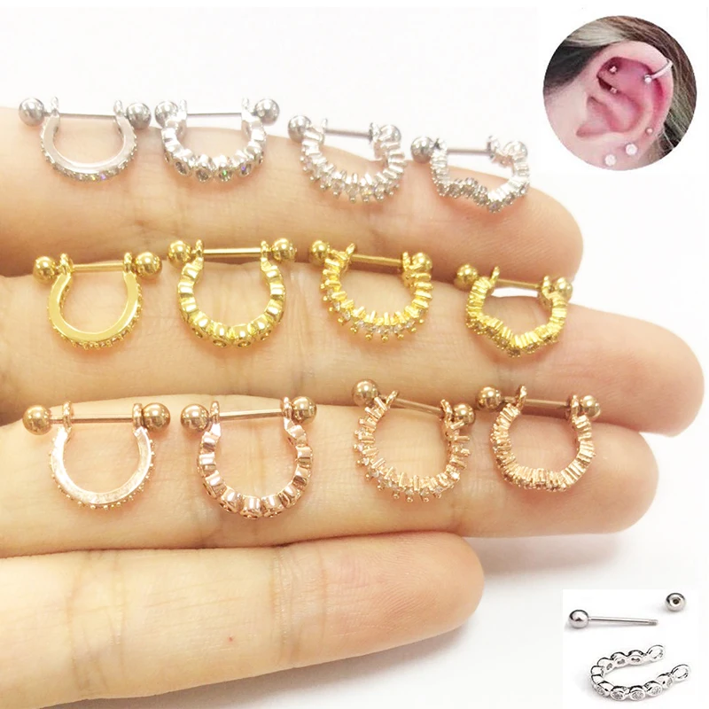 Серьги хирургическое стальное кольцо для пирсинга спиральный для хряща ракушка штанга с Cz обруч хрящевая мочка уха кольцо для козелка кольцо ювелирные изделия для тела