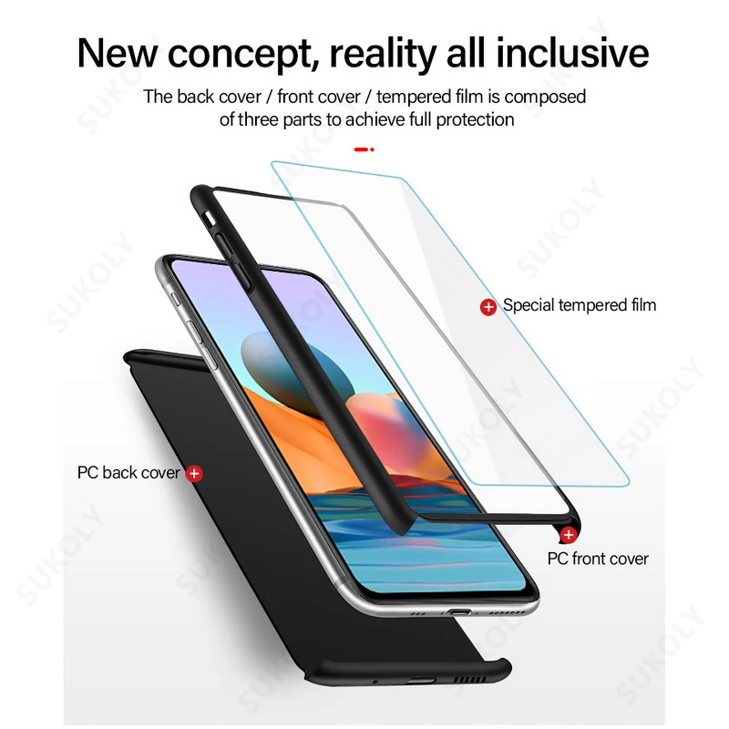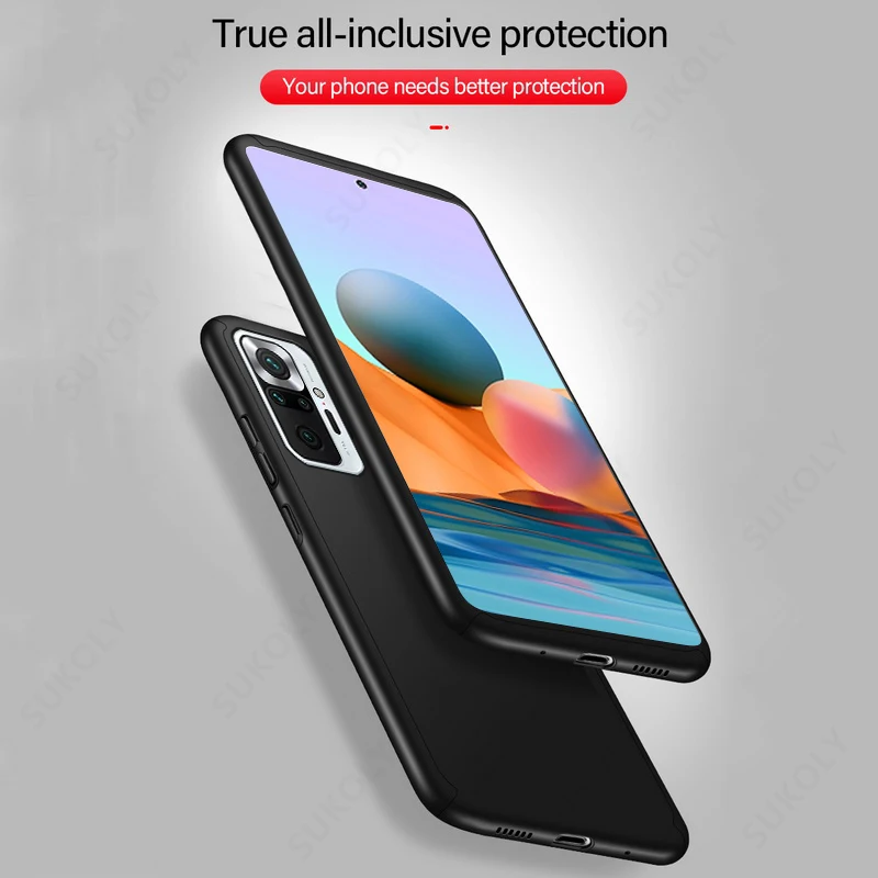 Чехол для Xiaomi Redmi Note 10 Pro с полным покрытием на 360 , защитный чехол + закаленное стекло для Redmi 9 s, 8, 7 Pro, 9C, Mi Poco X3, M3, A3 Lite