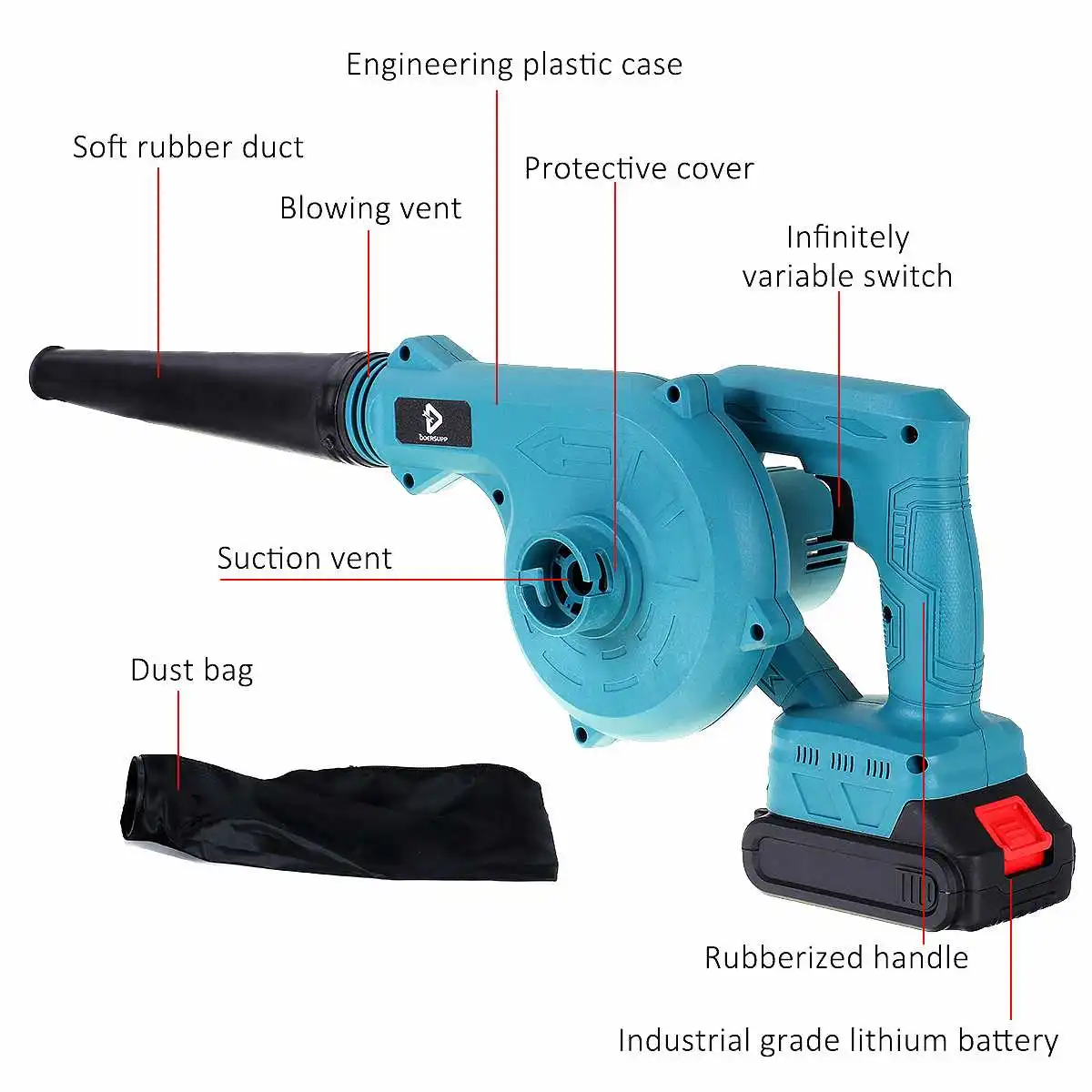 Информация о продукте:Особенности:-Мощный мощный двигатель, медный сердечник, большая мощность, более длительный срок службы.-Быстрая установка, удобная и быстрая установка и разгрузка аксессуаров и хоста.-Защитная крышка предотвращает попадание мусора в вентилятор.-Нескользящая прорезиненная ручка, стабильная и удобная ручка, не болят руки при работе в течение длительного времени.-Бесступенчатое Управление скоростью, скорость ветра может регулироваться при нажатии силы, мощность может быть выходной по требованию, распределение электрической энергии является более разумным.-Охлаждающие отверстия в двигателе nacelle для снижения температуры двигателя и защиты двигателя.-Вращающееся крыльчатка низкого типа, повышающее давление ветра, двойная циклонная ветровая группа, более мощный ветер.-Выдувное всасывание двойного назначения, большая долговечность батареи, домашнее удаление/очистка пыли, промышленное удаление пыли, одна машина.Характеристики:-Цвет: зеленый-Вход: 110 В/220 В ~ 0.5A-Количество батарей (опция): 1 шт., 2 шт.-Вилка (опция): штепсельная вилка США, штепсельная вилка европейского стандарта-Напряжение: 18-21 в-Емкость аккумулятора: 10000 мАч-Объем воздуха: 10 (куб./мин)-Давление ветра (водяной столб): 100 (кПа)-Скорость вращения: 0-16000 (об/мин)-Размер: 50x7.5x2 0 см/19.7x3x7.9''Посылка включает в себя:1x воздуходувка1х сумка1x паяльная труба1x батарея/2x батареи (опция)1x адаптер1x Руководство пользователя