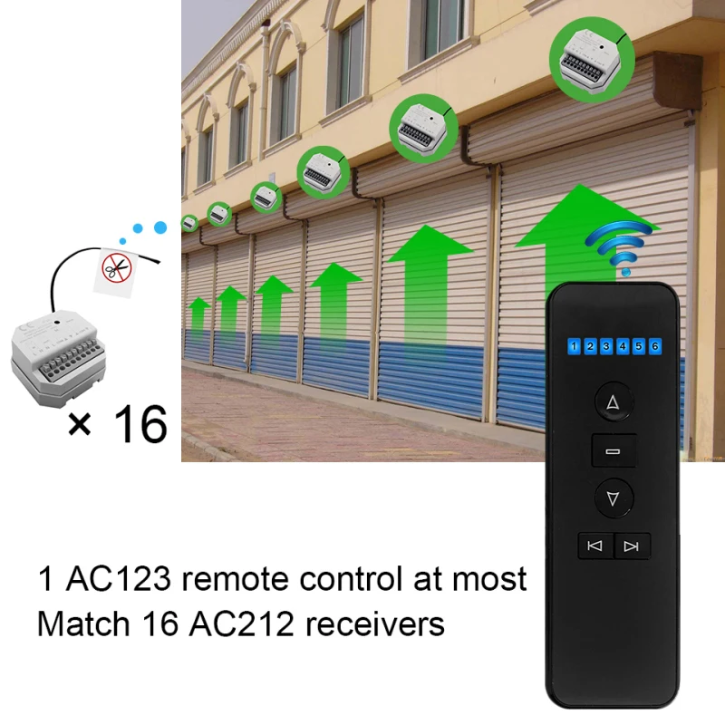 AC212-это приемник, который позволяет управлять одним приемником с помощью 20 ac123-16b пультов дистанционного управления.