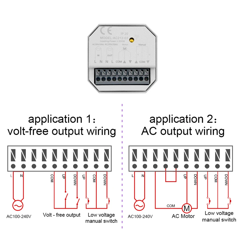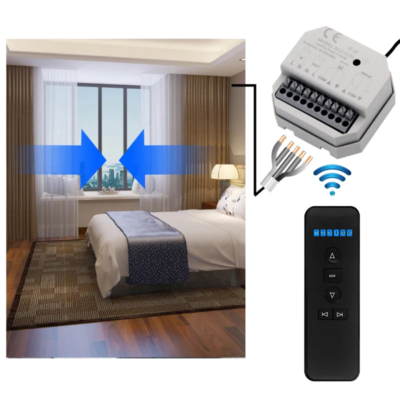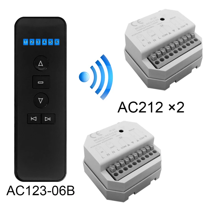 На какой двигатель может быть установлен приёмник AC212: у вашего двигателя должна быть функция остановки влево-вправо или вверх-вниз (например: задвижка затвора, электрический занавес, электрический затвор, электрическая раздвижная дверь, Электрический солнцезащитный козырек и т. д.).