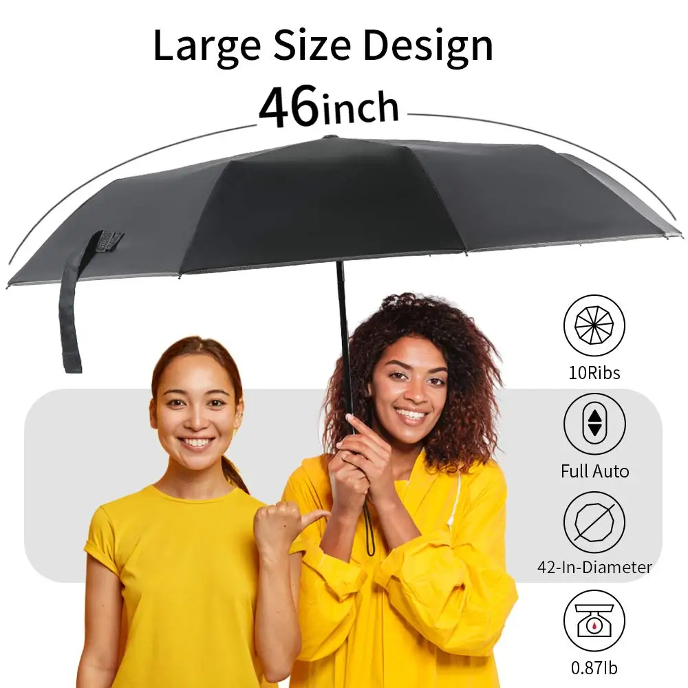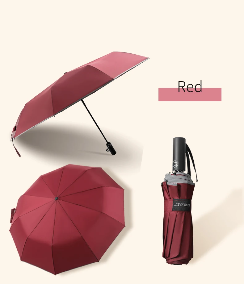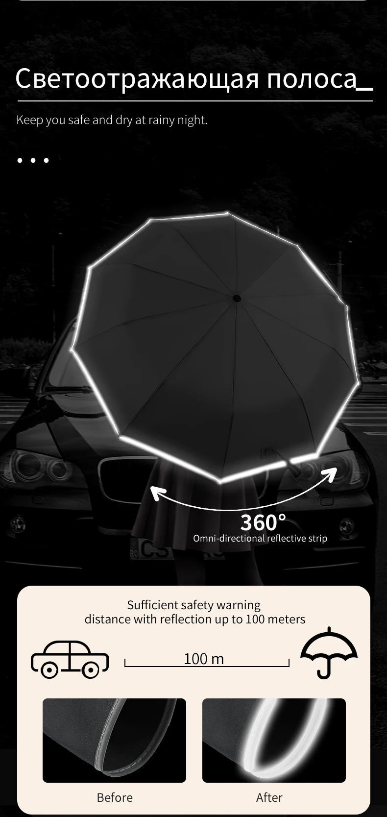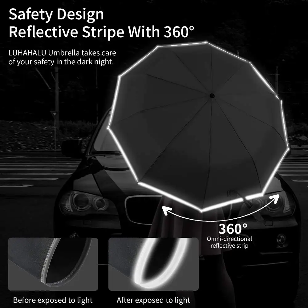 Большой зонт от дождя для мужчин и женщин, автоматические большие деловые складные зонтики, с 10 ребрами, светоотражающая полоска, подарок