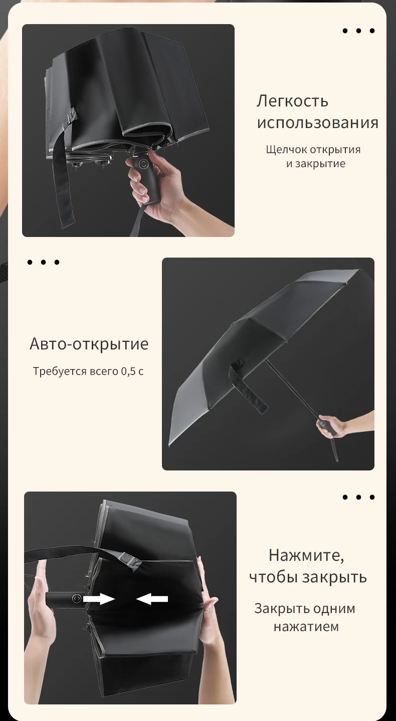 1. Один щелчок открыть и закрыть: больше не борется с закрытием зонта, прежде чем садиться в машину, особенно во время сильного дождя. Наш зонтик оснащен innovativeauto открыть/закрыть, так что все, что вам нужно сделать, это просто нажать кнопку на ручке!