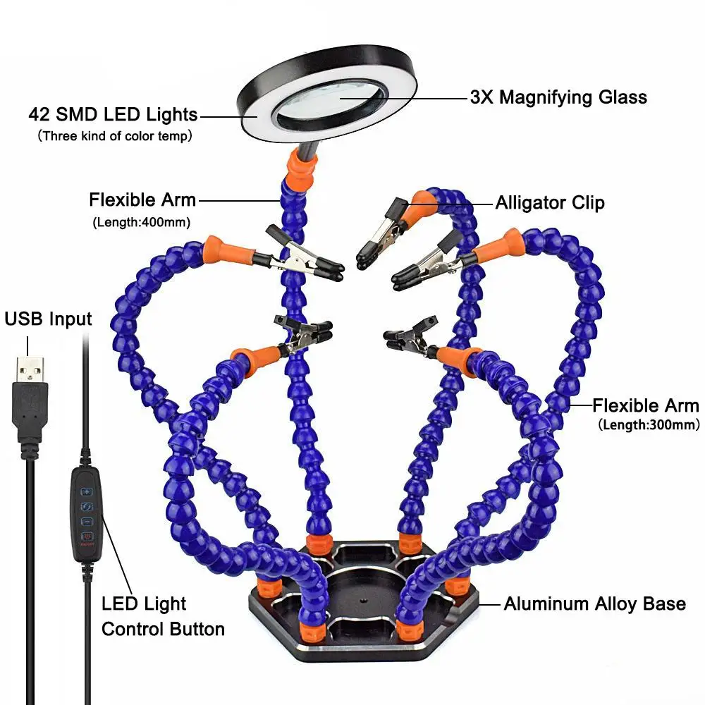 Гибкий скамья тиски, стол зажим паяльная станция с 5 шт. Гибкая рука паяльник для подключения к держатель Pcb Сварки ремонт "третья рука" инструмент