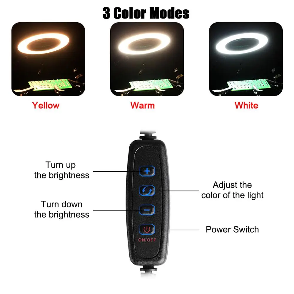 4. Увеличительное стекло USB 3X поможет вам сделать лучшую работу. Увеличительное стекло с светодиодный светильник, цветовая температура светодиодный светильник может быть скорректирована в 3 шага и яркость может быть скорректирована в 11 шагов, он может удовлетворить различные рабочие среды.