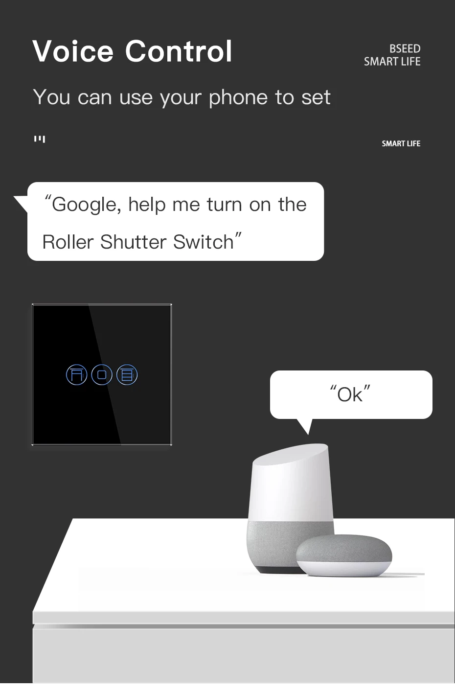 Беспроводной Wi-Fi переключатель для роликовых затворов BSEED, умный переключатель для слепых с сенсорным управлением через приложение Google Assistant, Alexa Tuya Smart Life