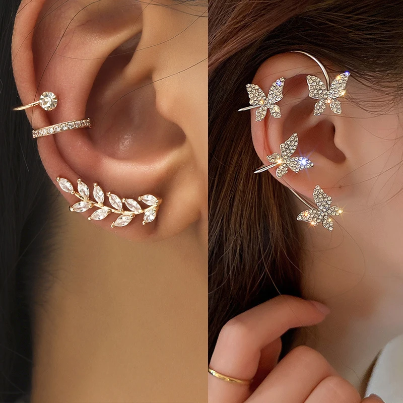 Серьги-каффы для ушей, без пирсинга, с кристаллами, для женщин, Модный богемный, ювелирные украшения, бижутерия, серьги-гвоздики клипсы