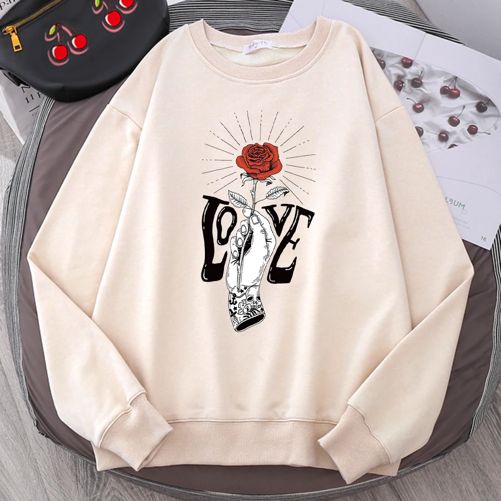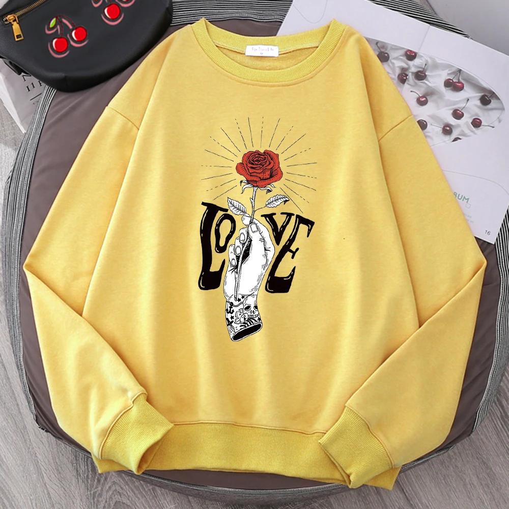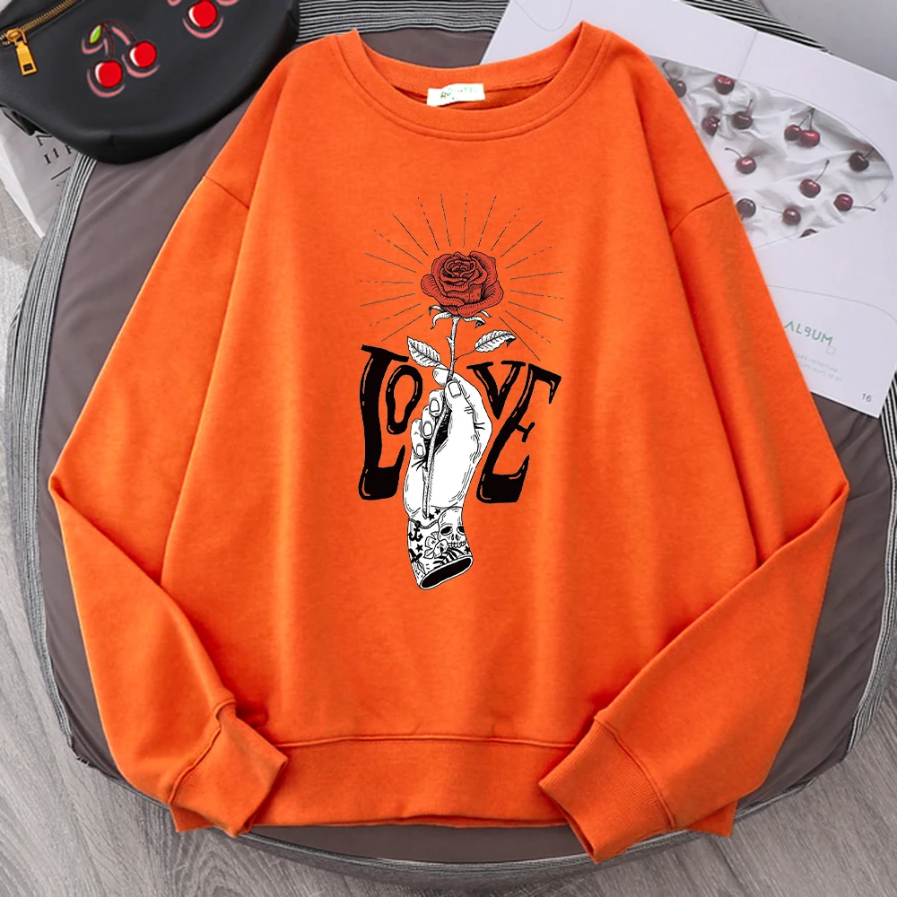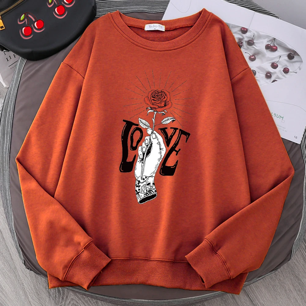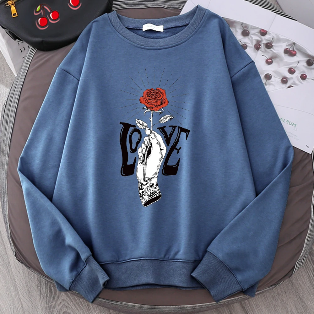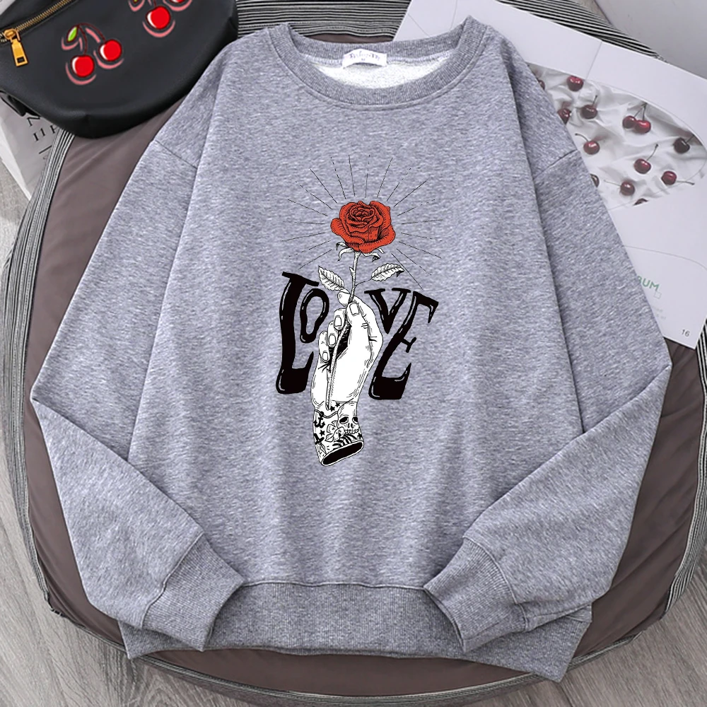 Толстовки с принтом «рука с розой», осенняя модная уличная одежда с круглым вырезом для мужчин, свободные толстовки с капюшоном большого размера