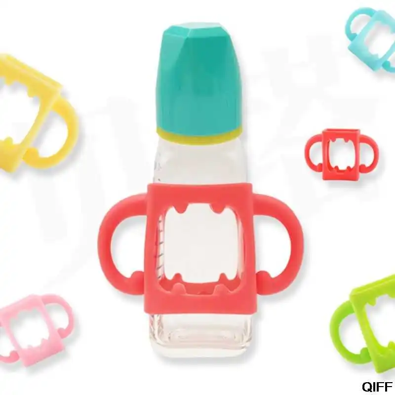 Прямая поставка, детская бутылочка, универсальная ручка, Мягкая силиконовая широкая рукоятка, разноцветные термостойкие бутылочки для кормления, аксессуары