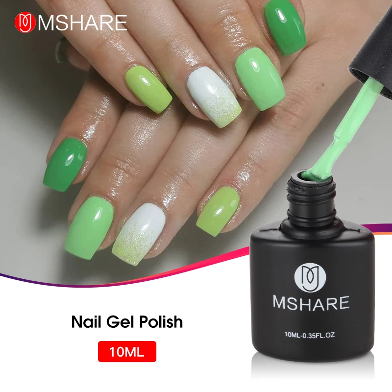 MSHARE зеленый лак для ногтей Гель-лак Лаки био-Гели Soak Off 12g белый молочно-белый бежевый розовый УФ-гель вылечить с Сушилка для ногтей