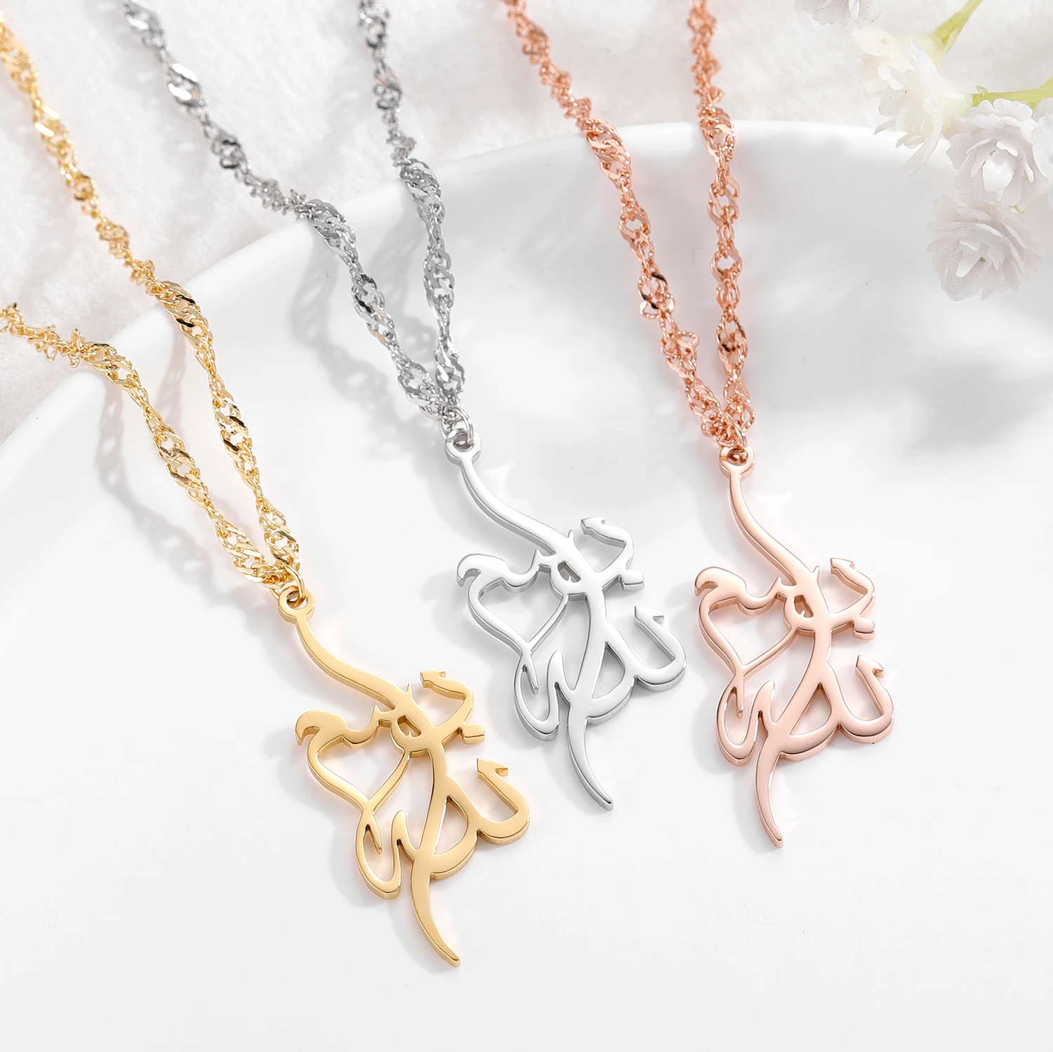 Ожерелье для каллиграфии Bismillah, индивидуальный кулон с арабским именем для женщин, ювелирные изделия, ожерелье из нержавеющей стали с табличкой