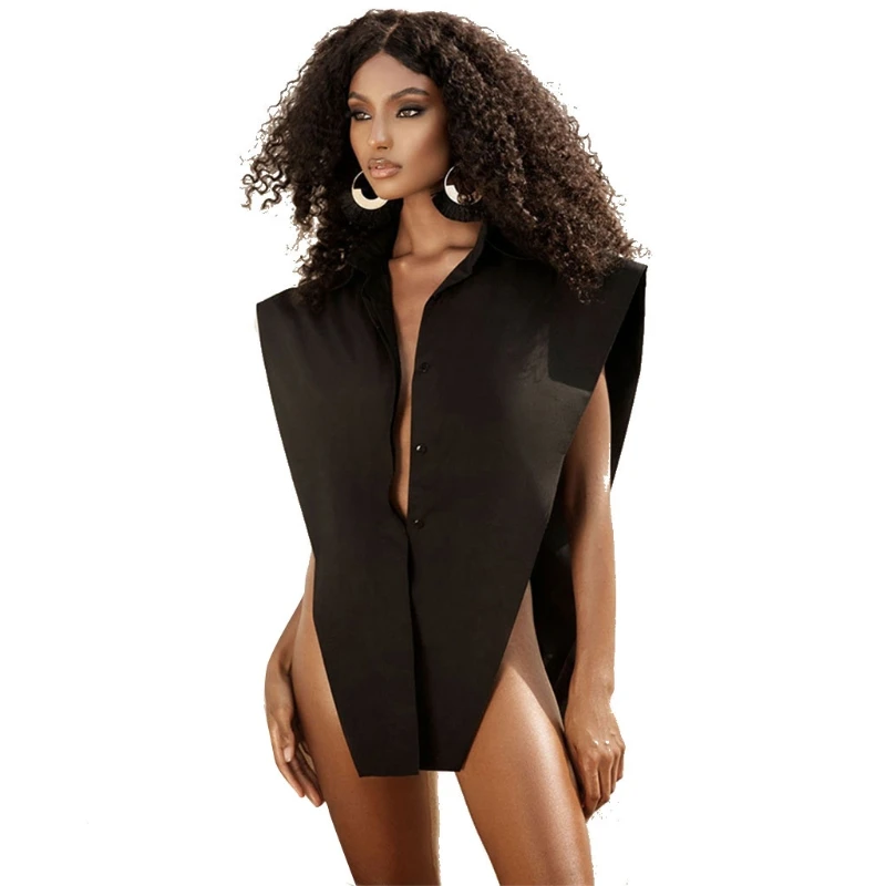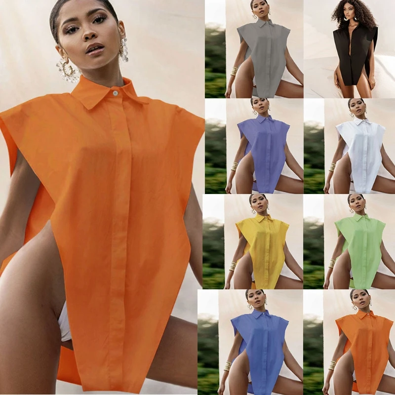 Женская летняя обувь блузка безрукавка с лацканами с застежками и асимметричная майка рубашки для мальчиков повседневные однотонные свободные пикантные Cover Up