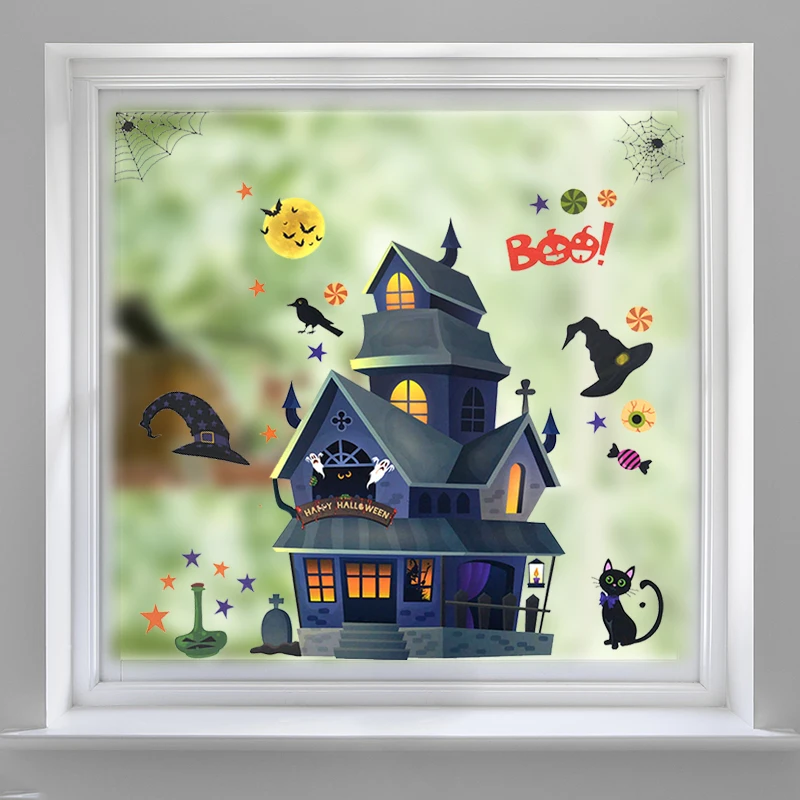 1 шт. Хэллоуин Тыква череп ведьма наклейки на окна стекло наклейка ...