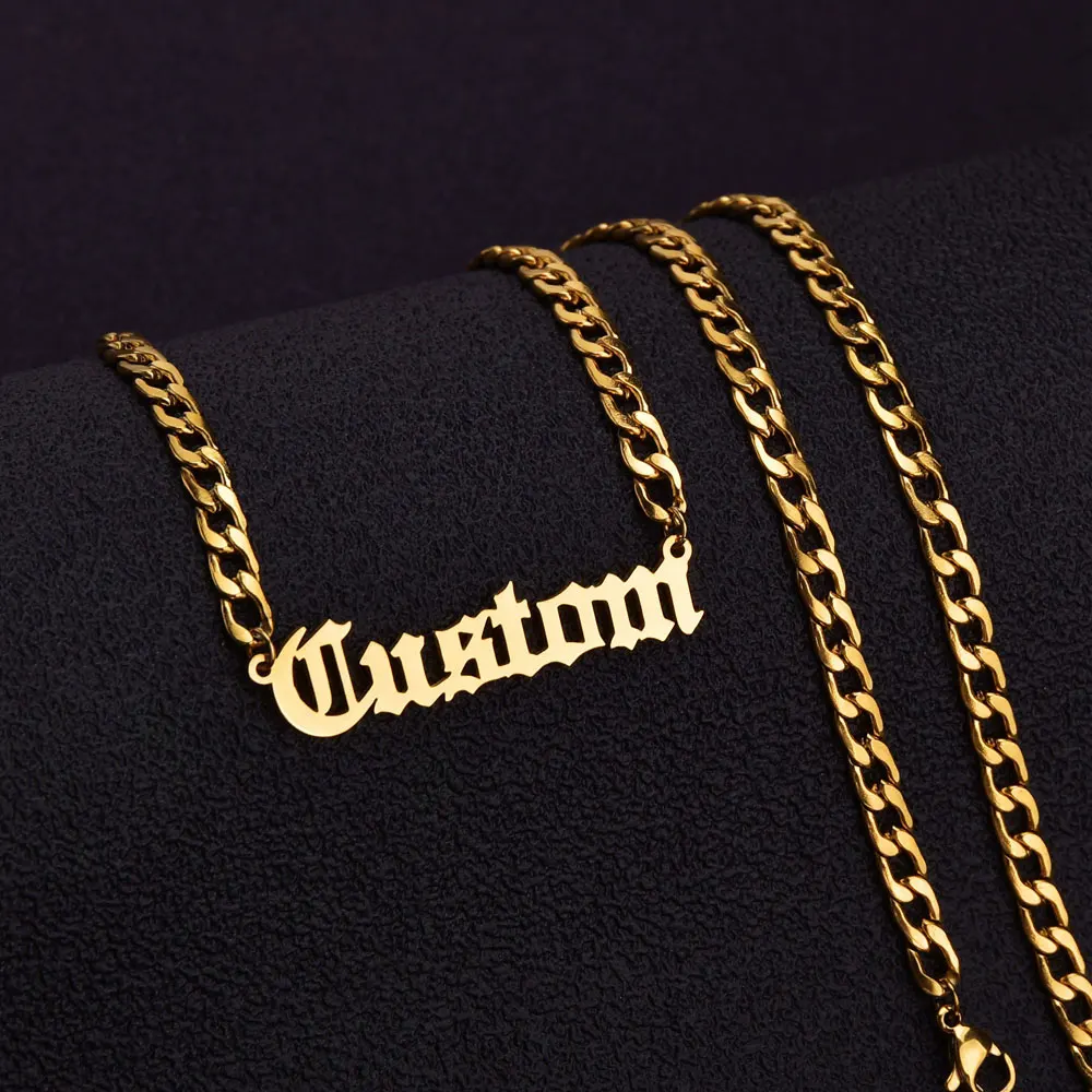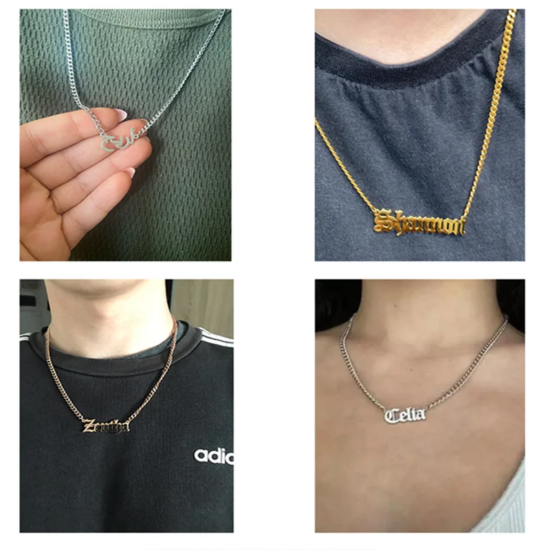 Цепи NK пара настраиваемым именем из нержавеющей стали ожерелье персонализированные одежда с буквами и цифрами комплект с подвесками, ювелирные изделия для мужчин и женщин, подарки