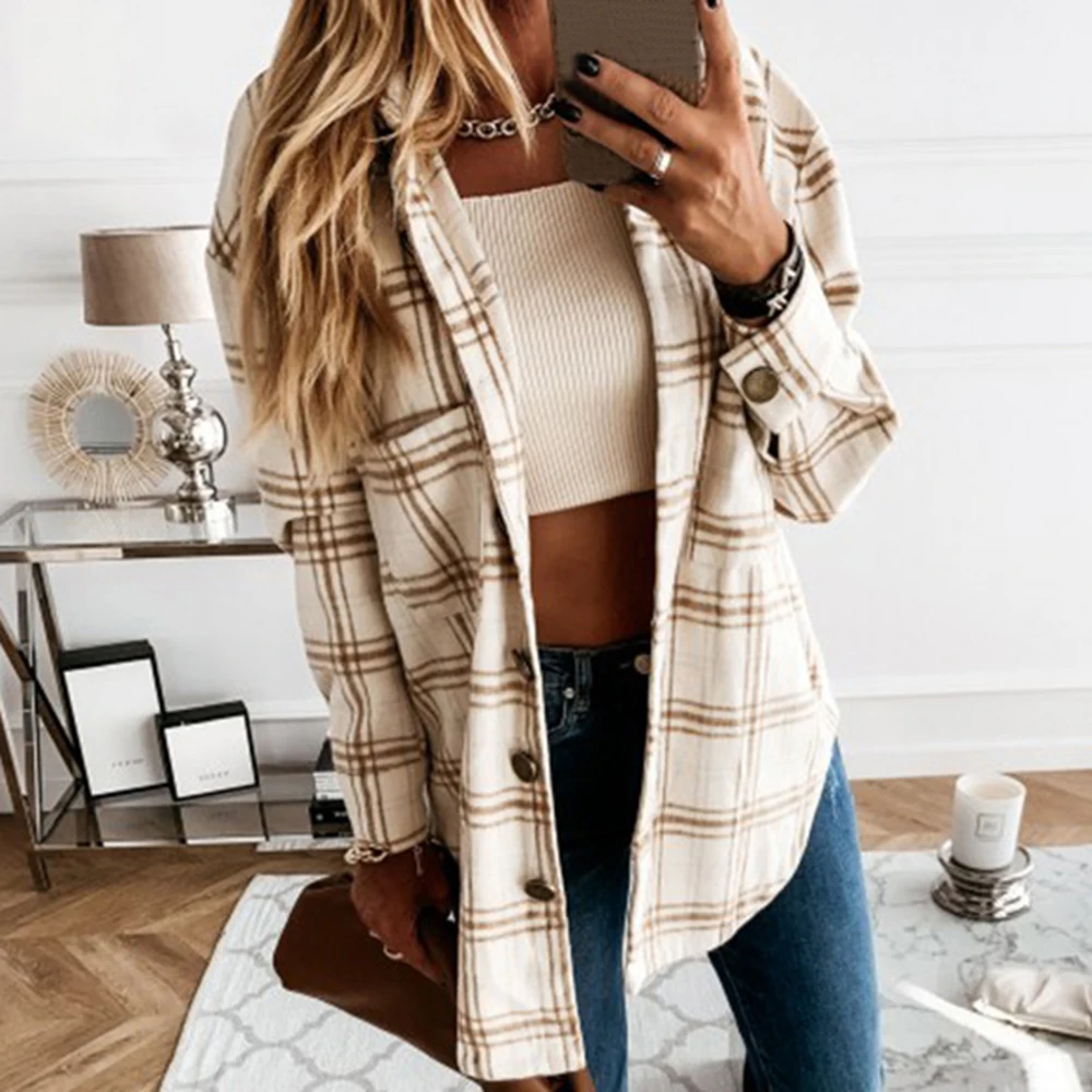 Осенне-зимняя женская клетчатая куртка, повседневное длинное пальто...