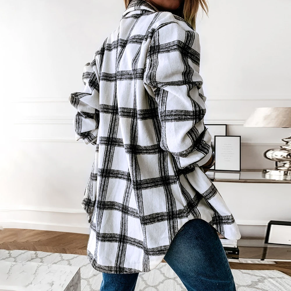 Куртка-рубашка женская в клетку с длинным рукавом, модная свободная...