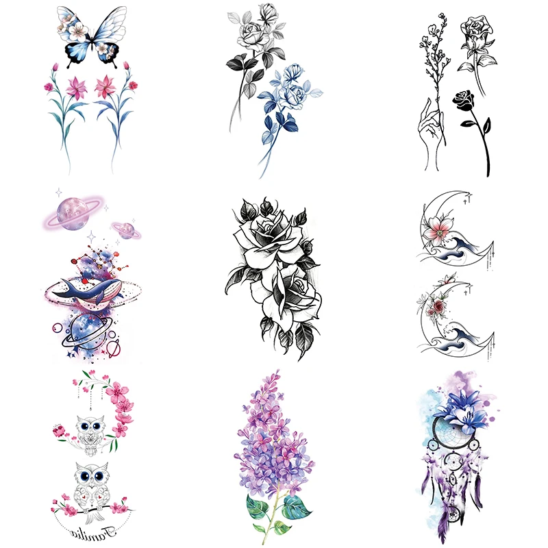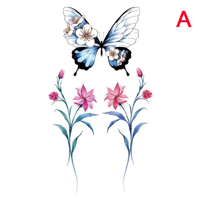 Временные татуировки-наклейки с цветами, бабочками, водостойкие иск...