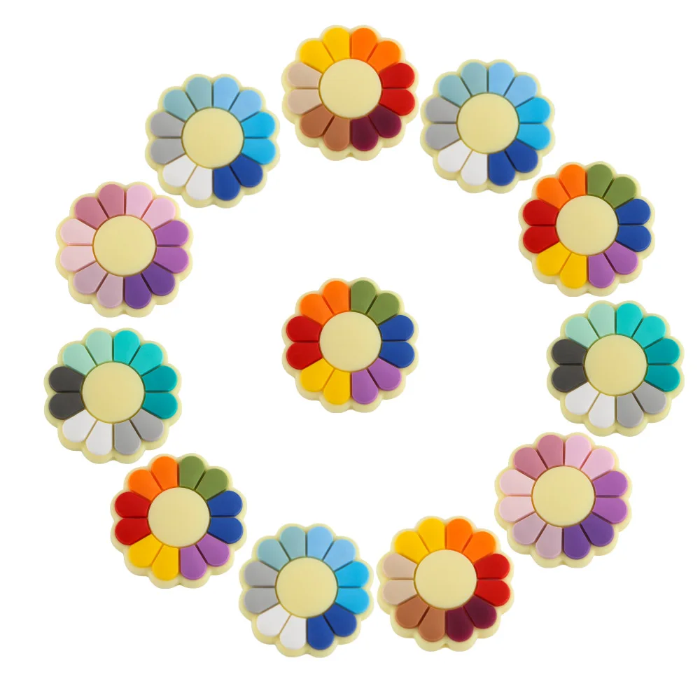 10 шт., силиконовые бусины в виде подсолнуха для прорезывания зубов
