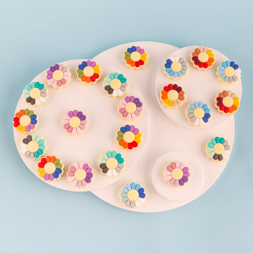 Kovict 10 шт. цветные цветы силиконовые бусины Детские молярные Прорезыватели DIY для соски ожерелье аксессуары жевательные игрушки для кормления