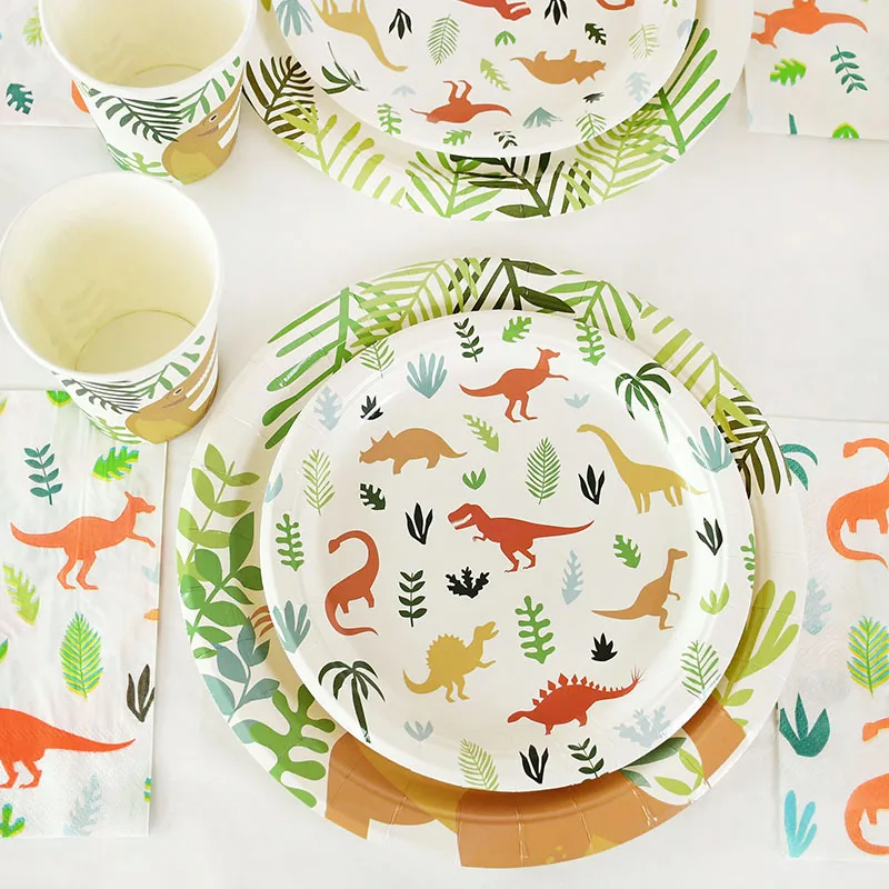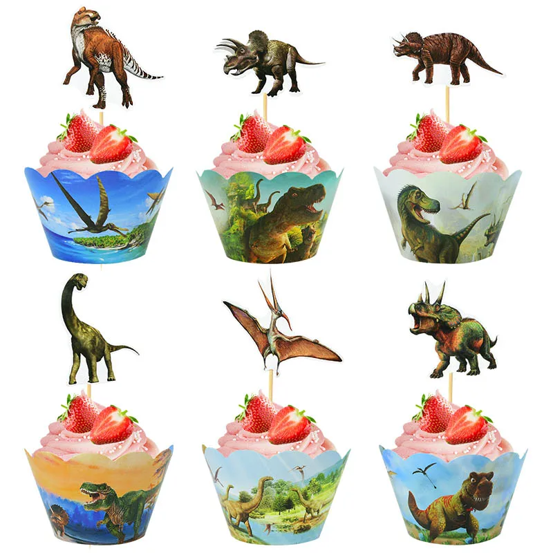 Дино semicut вечерние декор в виде динозавра одноразовая посуда бумажные Формы для кексов топперы коробка Вечерние игры день рождения детей, мальчика вечерние поставки
