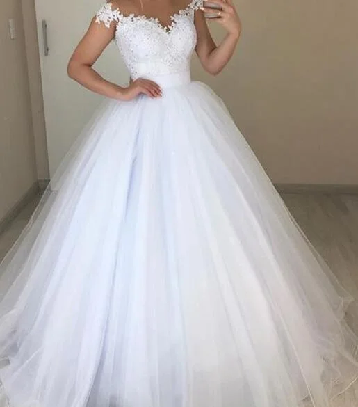 LUXIYIAO LO71 простой белый длиной до середины икры Свадебные плать...