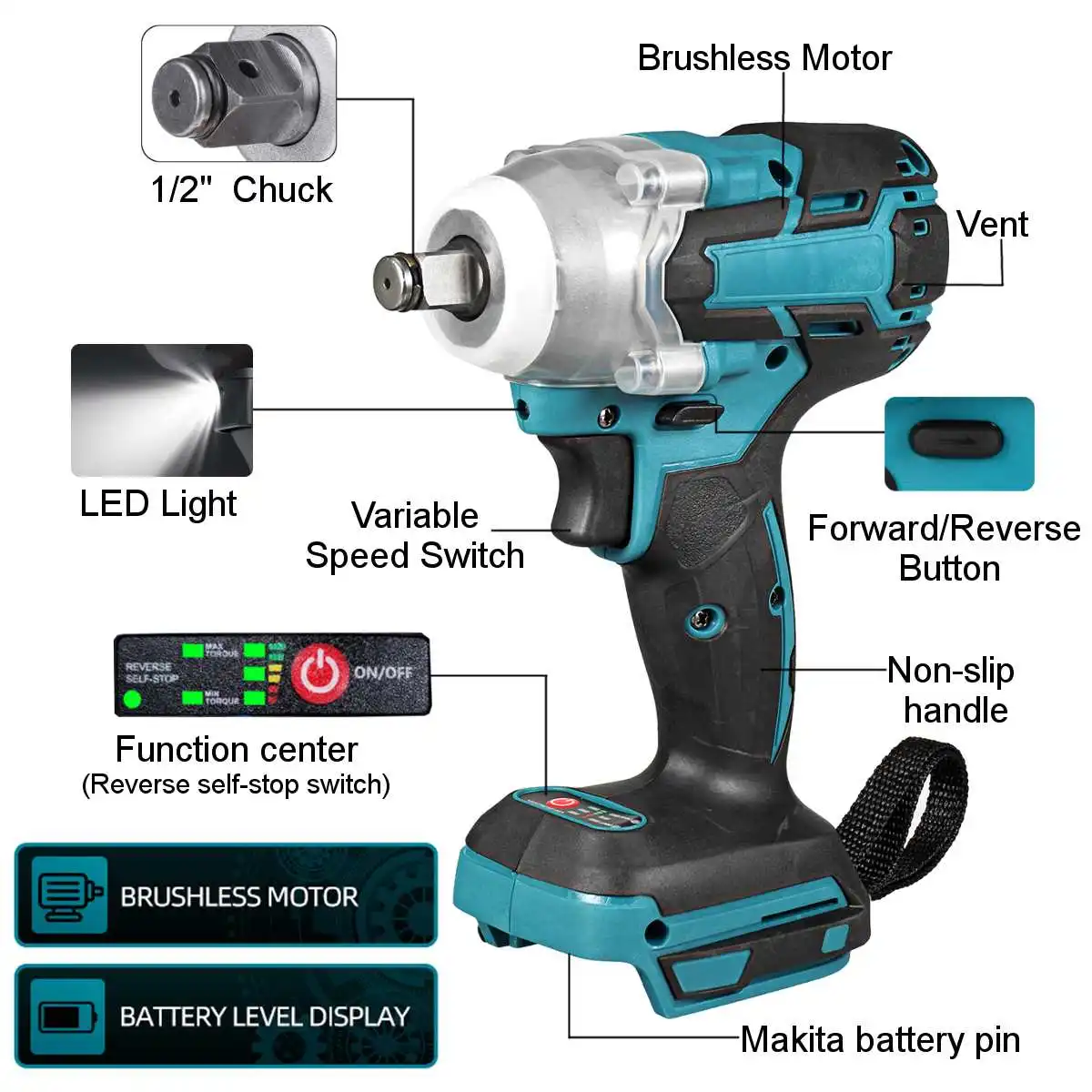 18 в 588N.m. Литий-ионный бесщеточный беспроводной 1/2 ''ударный ключ сменный драйвер для батареи Makita