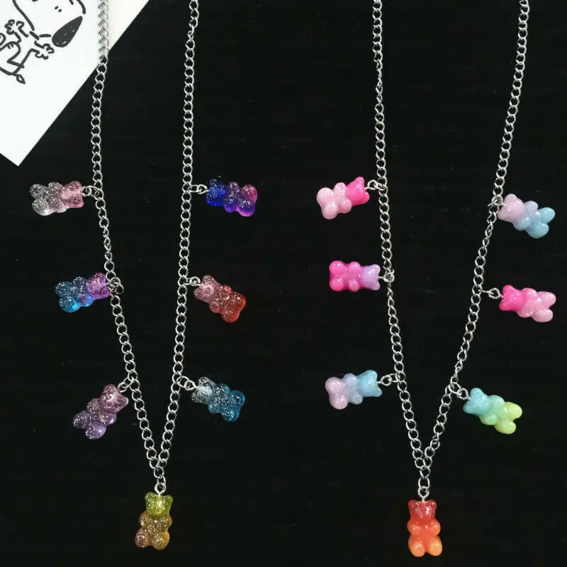 Ожерелье с радужным мармеладным медведем для женщин и девочек, Очаровательное ожерелье ярких цветов в стиле хип-хоп, повседневные украшения, подарки для вечеринок, A +++