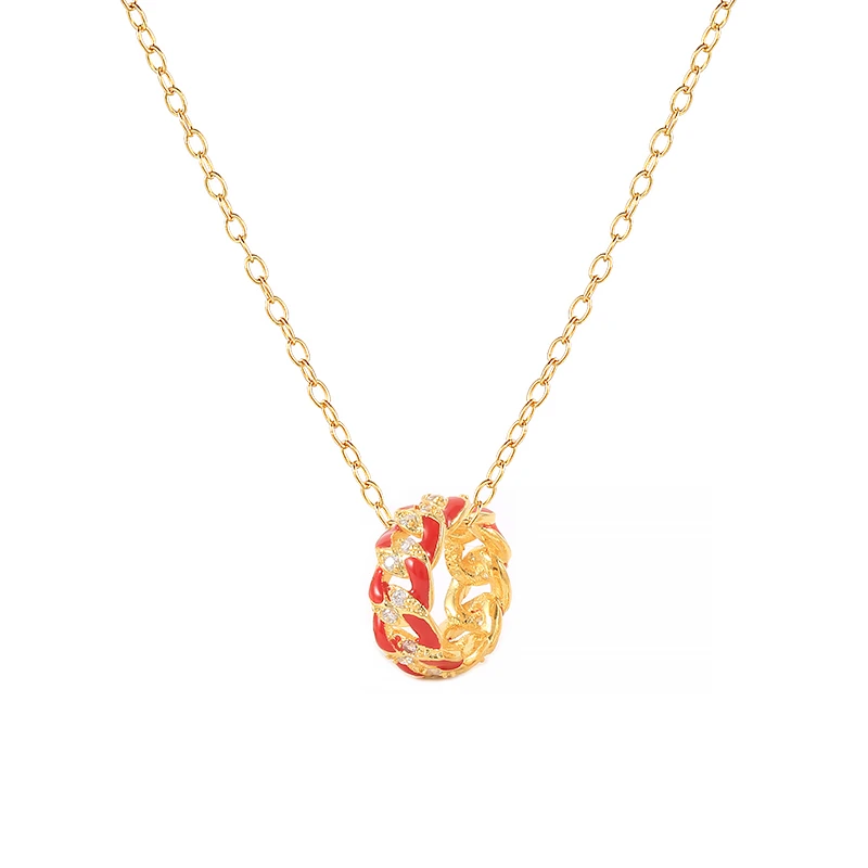 Ожерелье женское эмалированное под розовое золото вечерние кулоном ...