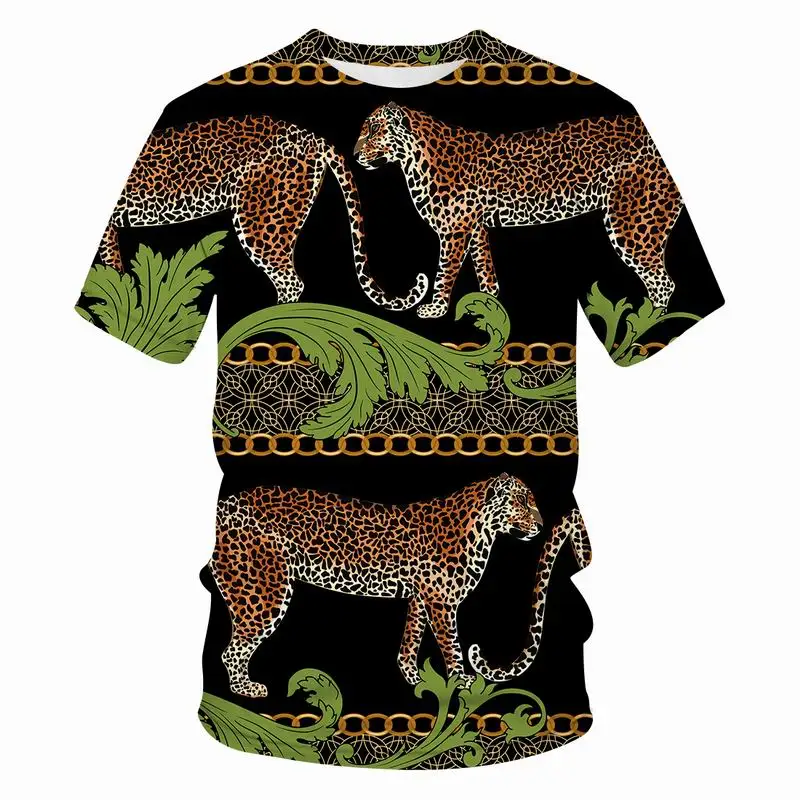 Мужская футболка с леопардовым принтом, одежда, с коротким рукавом,...