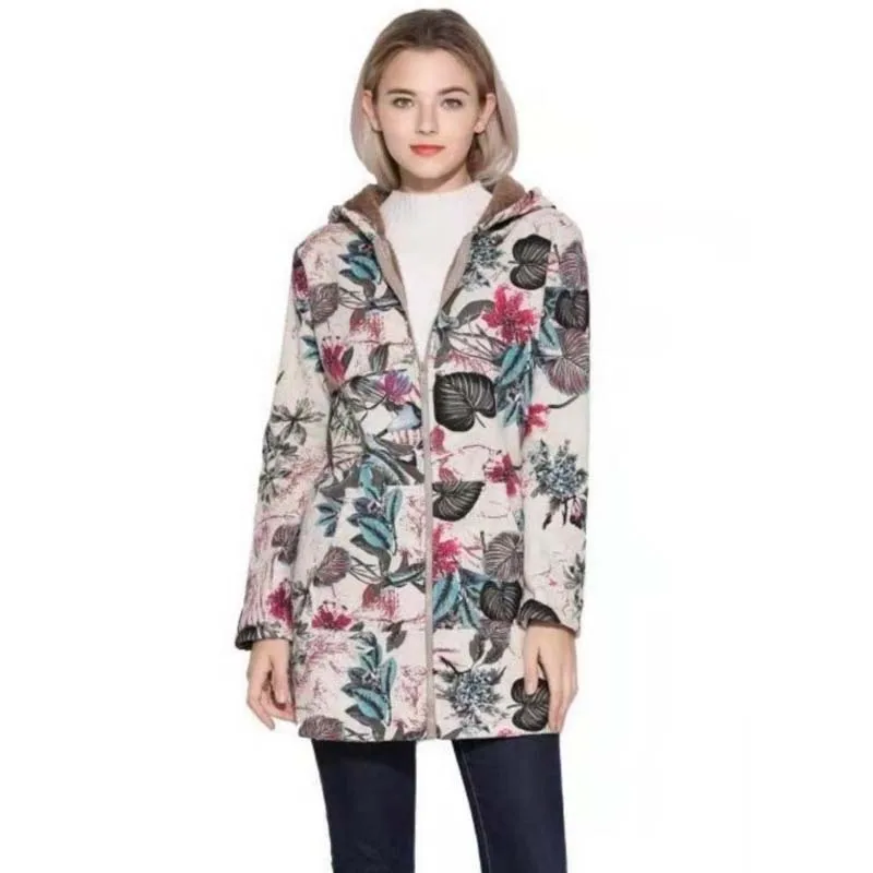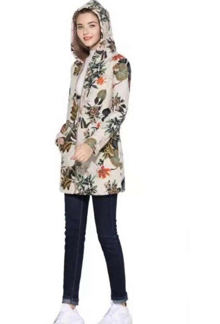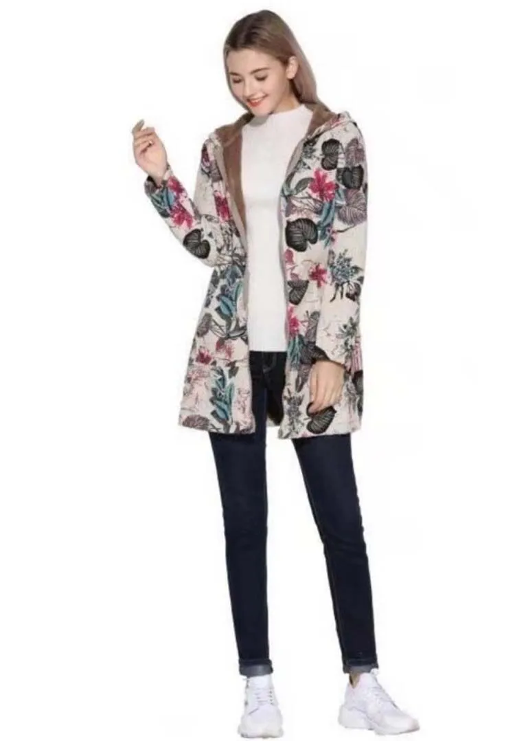 Модная зимняя куртка с капюшоном с цветочным утеплителем, женские парки, длинные хлопковые куртки, теплая верхняя одежда, пальто для женщин 5XL