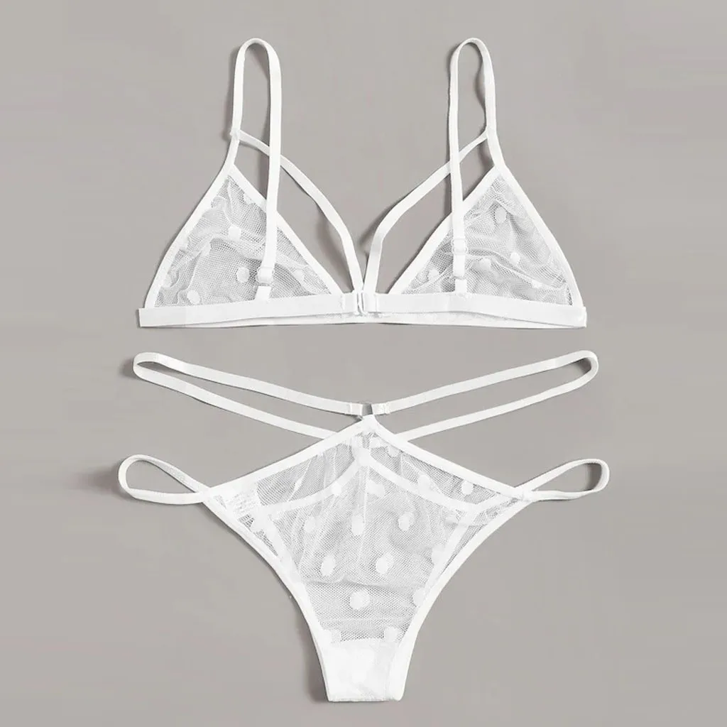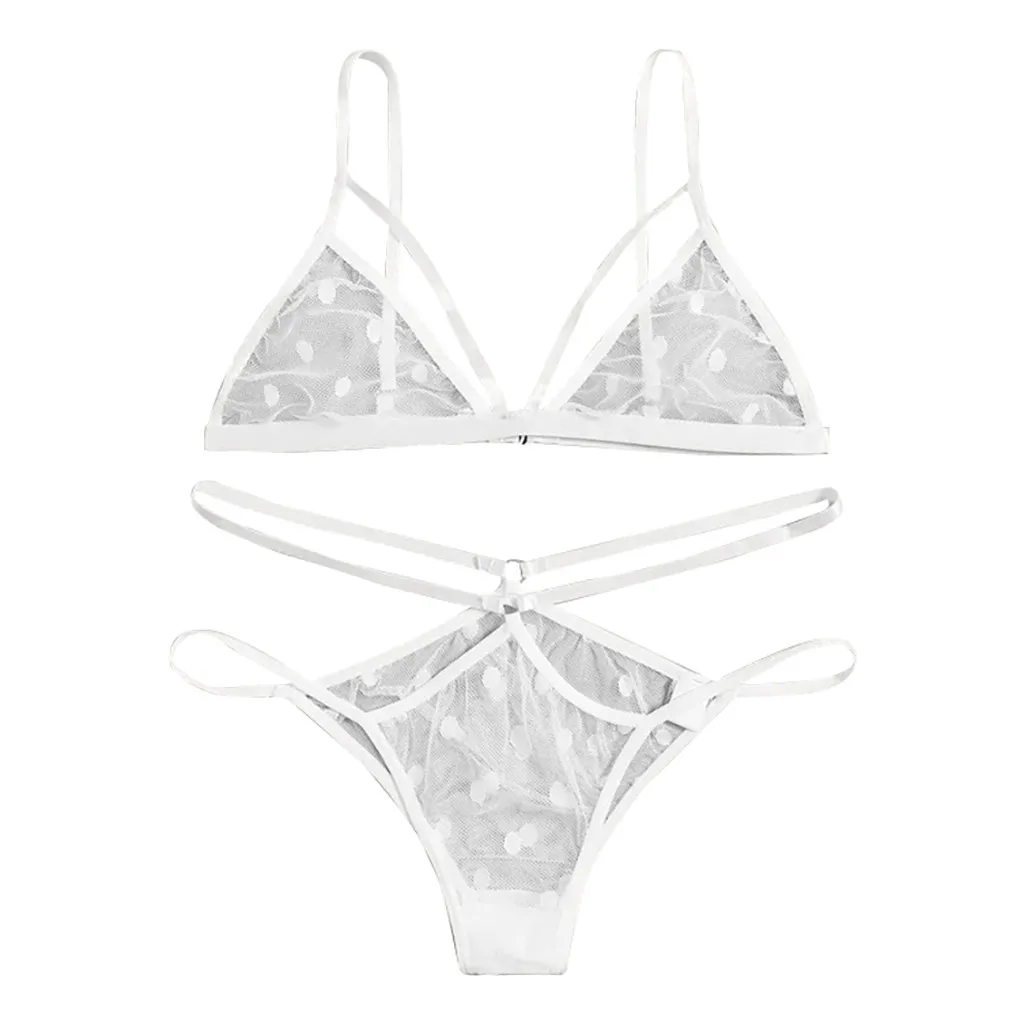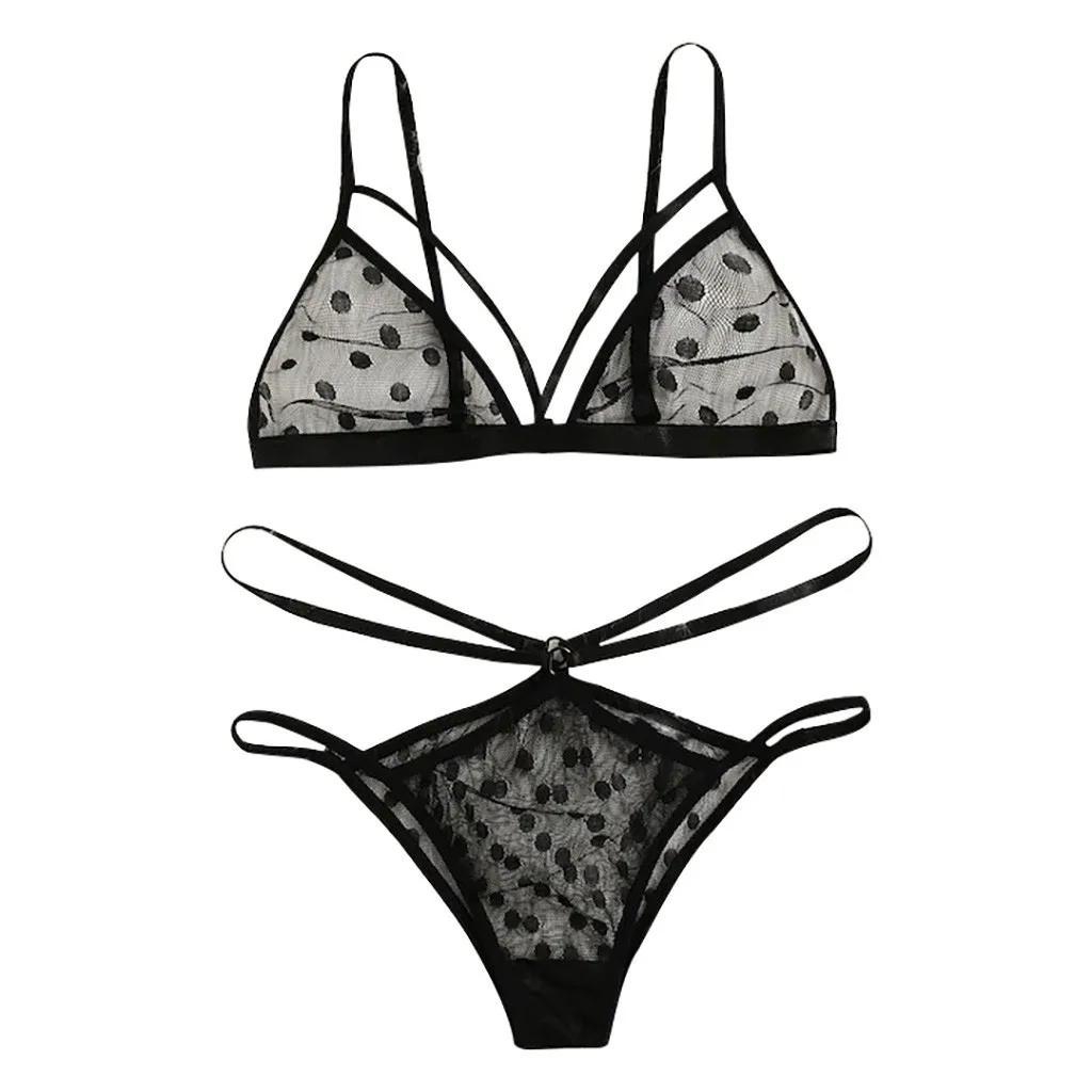 Пикантное нижнее белье в горошек, женский прозрачный бюстгальтер, Прозрачный Женский комплект, стринги, Пижамный наряд, Привлекательный костюм из трех точек с бюстгальтером