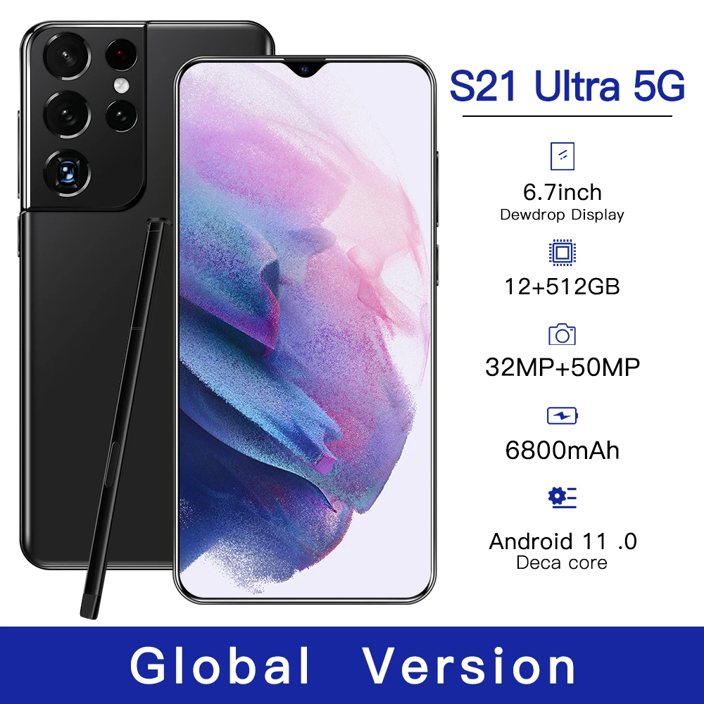 UNIQ S21 + Ультра 7,2 дюймовый смартфон 5800 мАч, глобальная версия 4G 5G Android 10,0 16MP + 32MP 12 Гб + 512