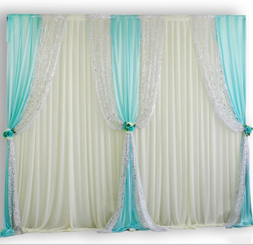 10ft X10ft белый Шторы Тиффани синий льда шелка драпировка, серебряными Drapeery фон Свадебная вечеринка Шторы украшения