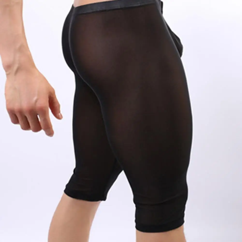 Пикантные Для мужчин пижамные шорты брюки удобные шорты одежда для сна со средней посадкой, просвечивающее прозрачная длиной до колена узкие шорты для сна, штаны