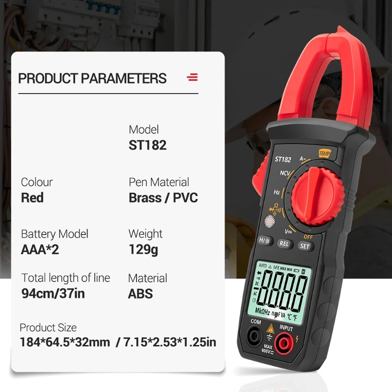 Цифровой мультиметр-зажим ST182, амперметр постоянногопеременного тока, для проверки напряжения, емкости, бесконтактного напряжения, Ом