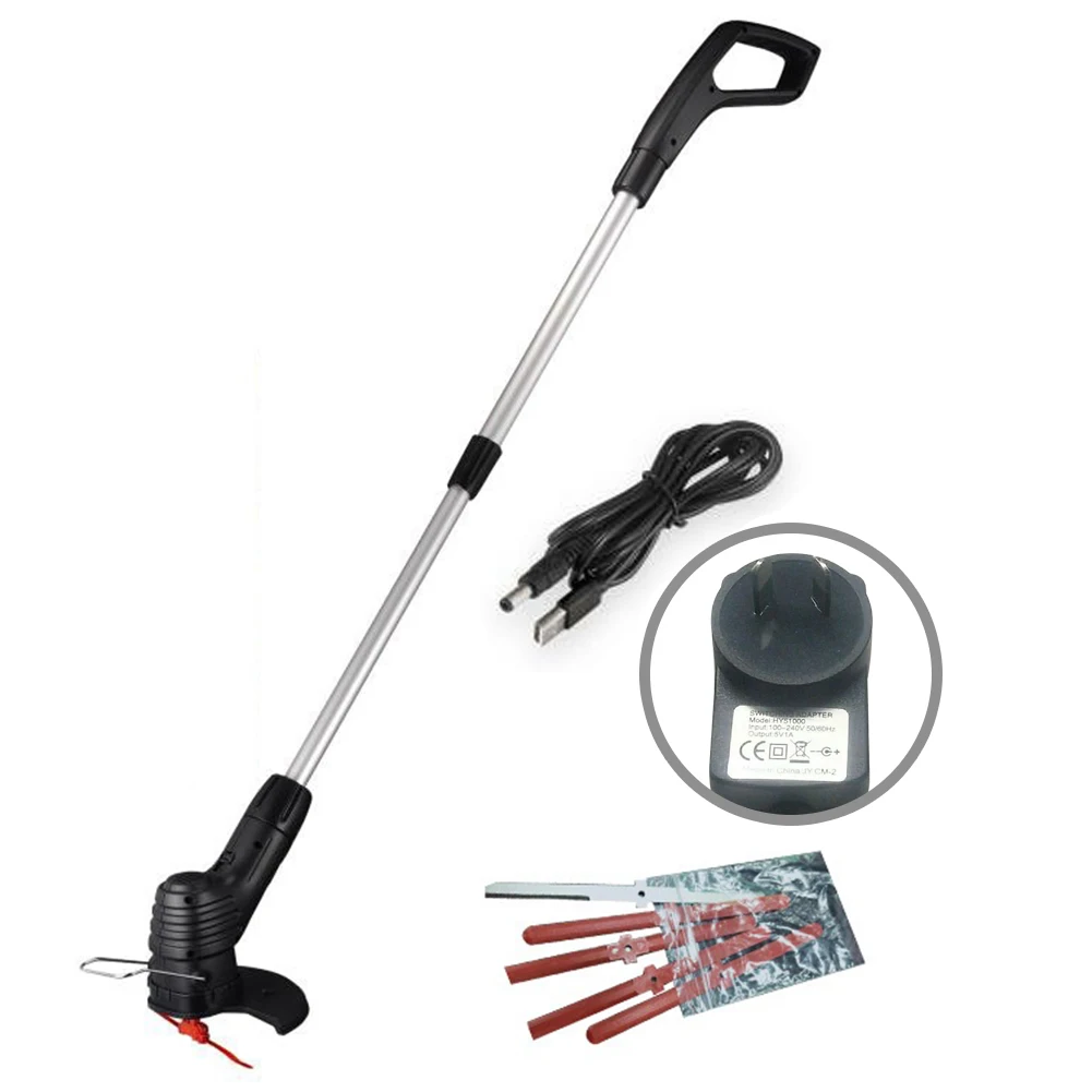 Многофункциональный перезаряжаемый электрический триммер с лезвиями, беспроводные бытовые садовые инструменты, садовые ножницы, садовые ножницы, садовая газонокосилка, триммер для травыХарактеристика:Электрическая прополка литиевой батареи: Зарядка литиевой батареи, эффективный Срок службы батареи. Встроенный аккумулятор 2000 мАч, может работать непрерывно в течение 3-4 часов, прощайтесь с запуском проводов.Портативный Телескопический столб: может удовлетворить требования различных высот (столб может быть телескопическим 1-30 см), не нужно сгибаться, чтобы Косить газон, легко зафиксировать высокий забор!Быстро Режьте траву, не повреждая лужайку: при садоводстве и лужайке скашивая веревка из нейлона может защитить стволы деревьев и цветы от вреда во время резки травы. Сорняки вокруг цветов на багажнике легко чистить!С защитным покрытием: эффективно предотвращает сорняки от брызг при просорке.Широкий спектр применения: подходит для обрезки садов, пастырской травы, парков, вилл, небольших кустарников и т. д.Спецификация:Название продукта: электрическая Беспроводная литиевая батарея газонокосилкаМатериал: алюминиевая трубка/ABSВремя зарядки: 30 минут-2 часаЛитиевая батарея: аккумулятор 18650Напряжение: 3,7 V/2000mAhЧисло оборотов холостого хода: 4,5 V оборотов/1 минуту оборотов/13000 оборотовВремя работы без нагрузки: 3-4 часаМощность: 3 ВтТок: 700 мАУдлинение алюминиевой трубки: 1,05 метровНе удлиненный: 75 смПримечание:В связи с различиями мониторов и эффектами освещения реальный цвет товара может немного отличаться от цвета на фотографиях. Спасибо!Возможны отклонения в 1-2 см вследствие измерений вручную.