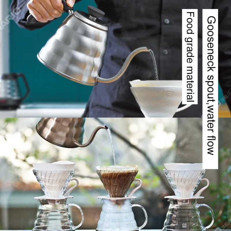 Особенности:Материал пищевого качества: Изготовлен из высококачественной стали и Пластиковой ручки, отличается антикоррозийной стойкостью, прочностью и устойчивостью.Носик: кофейник имеет гусиная шея носик для устойчивого и точного потока воды.