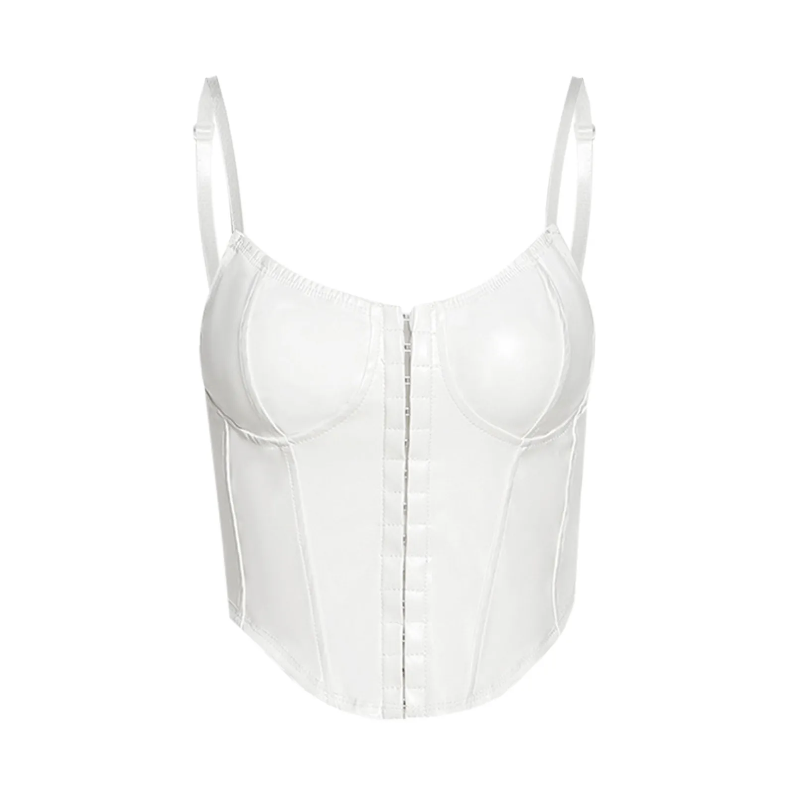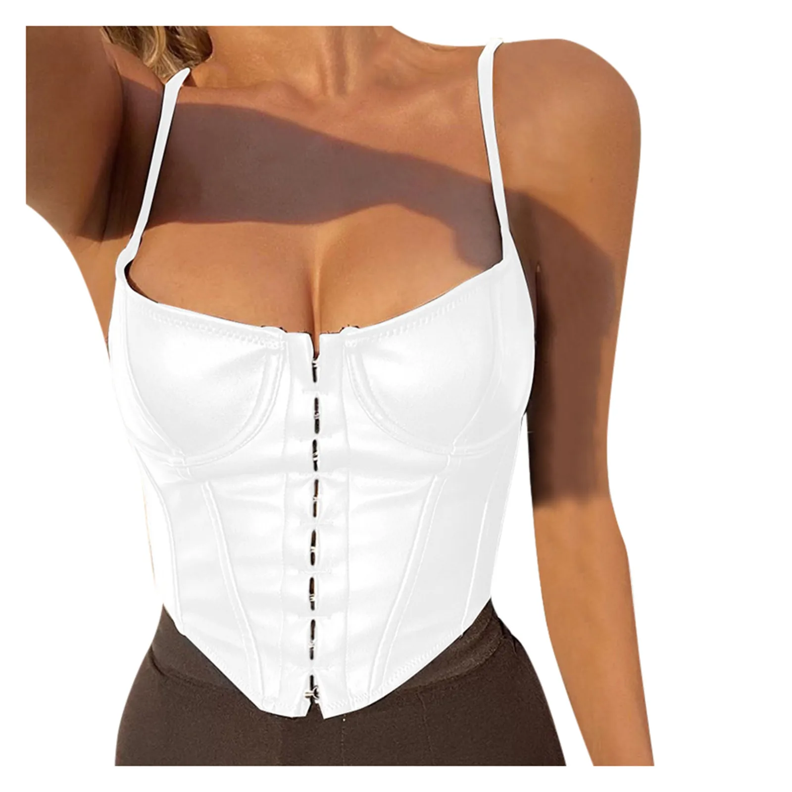 Кожаный топ, пикантный кроп 2021, женская мода, подходящий ко всему слинг, тонкий короткий телескопический магнитный корсет, Camisol Топик Женский