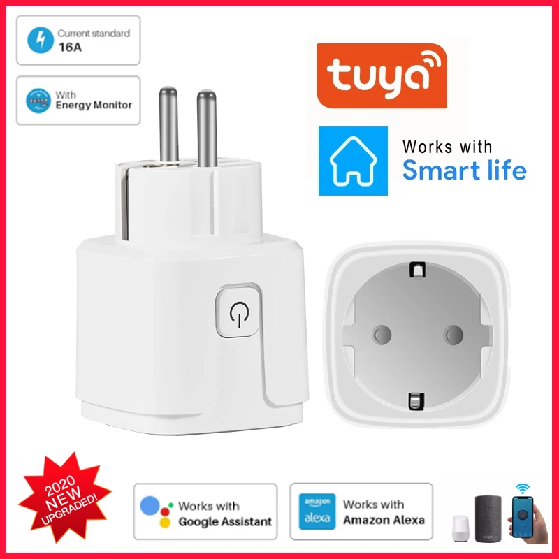 16A умный Wi-Fi разъем ЕС с Мощность монитор умный дом Беспроводной розетка таймер затычки работает с Amazon Alexa Google Home приложение Tuya