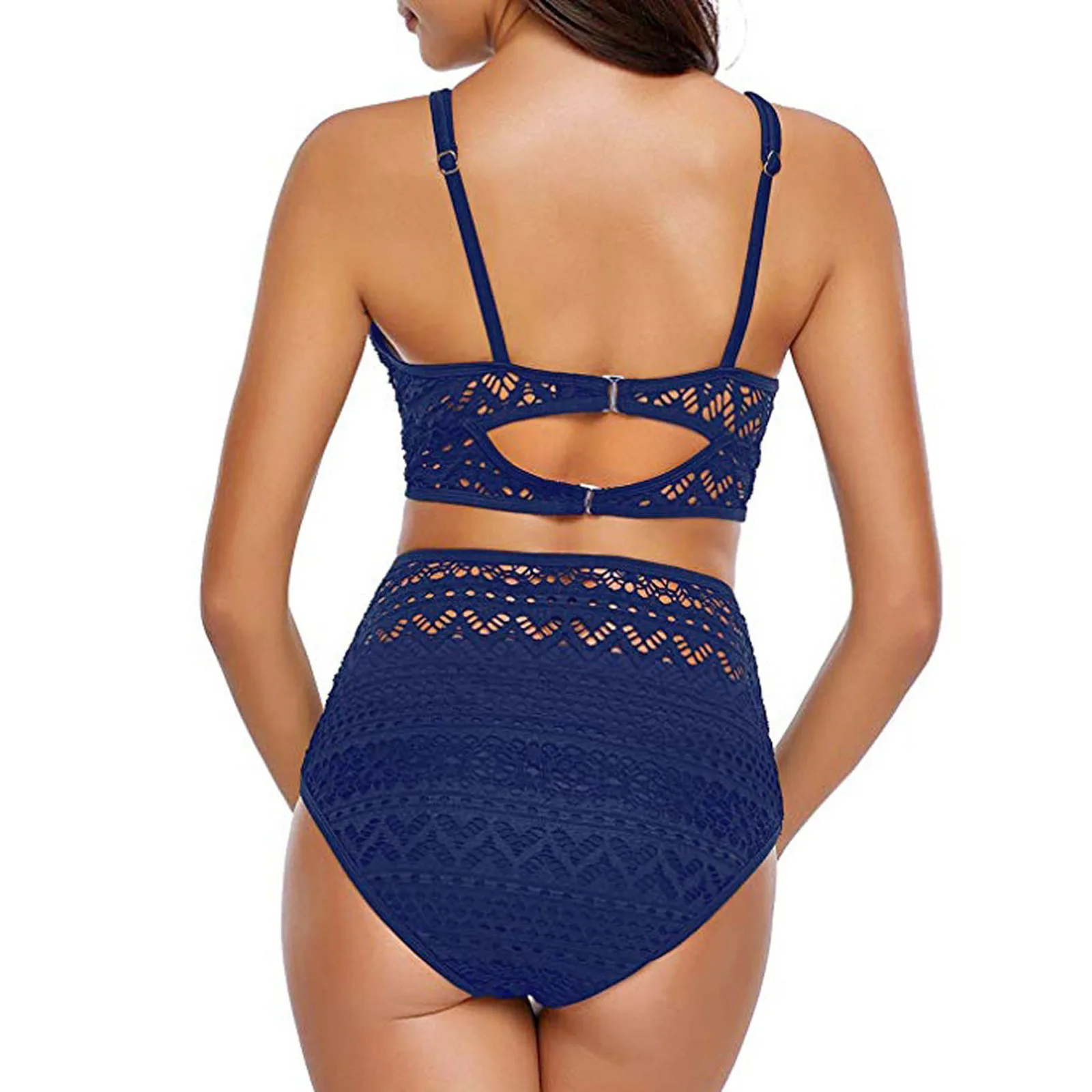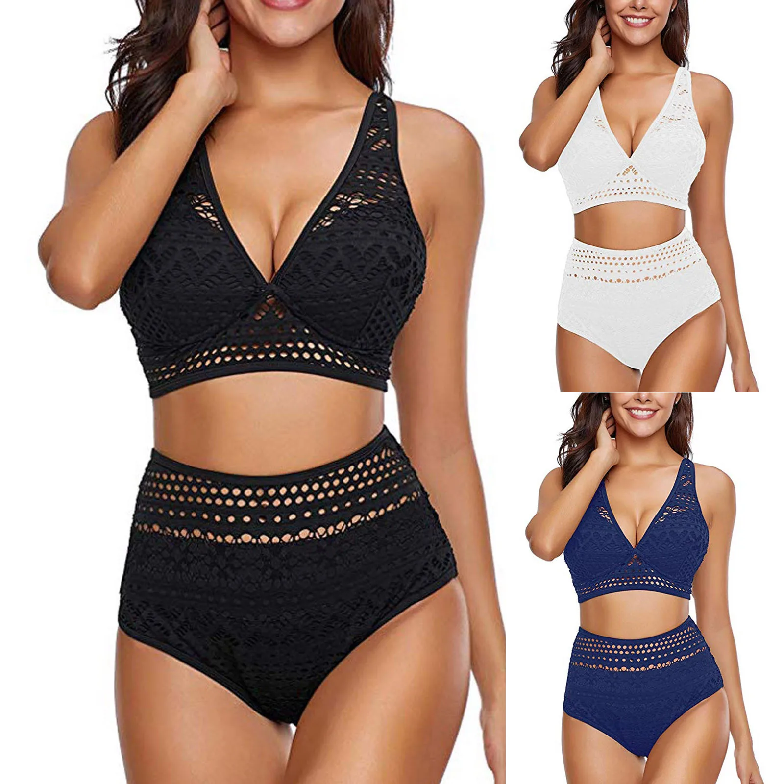 Женский купальник бикини 2021, Женский комплект бикини с пуш-ап из двух предметов, вязаное кружево, высокая талия, V-образный вырез, купальник, шорты для контроля живота