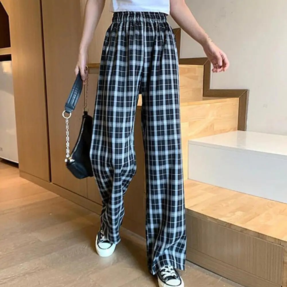Брюки женские с завышенной талией, дышащие эластичные прямые клетчатые свободные штаны, повседневная одежда
