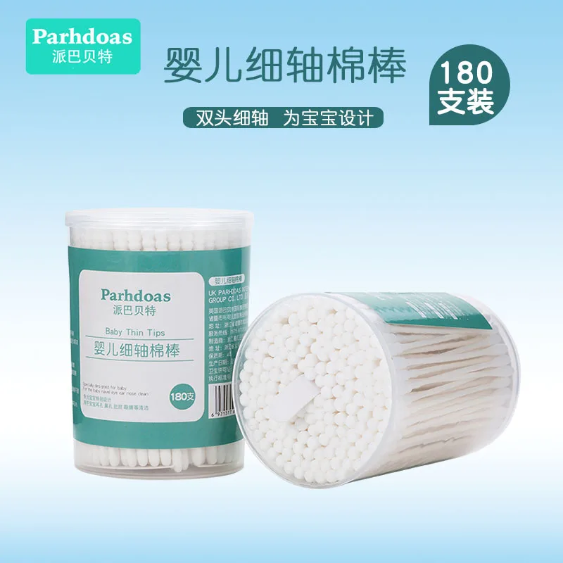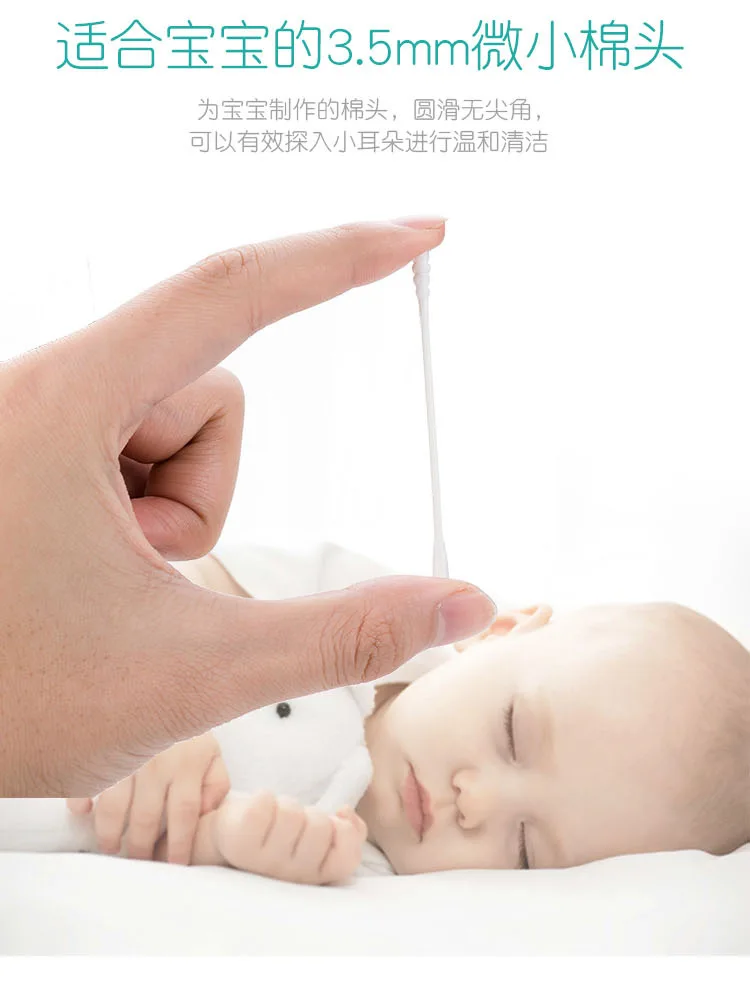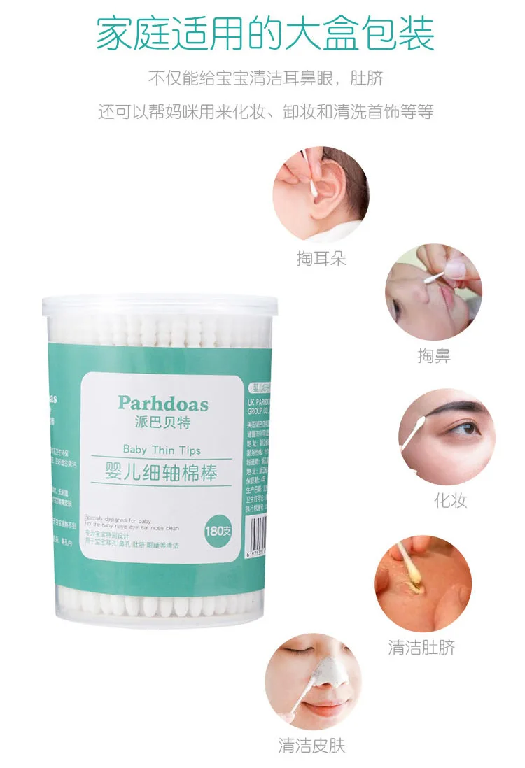 Ватный тампон двойного назначения для ухода за новорожденными, для чистки ушей, носа, пупка, тонкий стержень, санитарные детские ватные палочки, 180 палочек