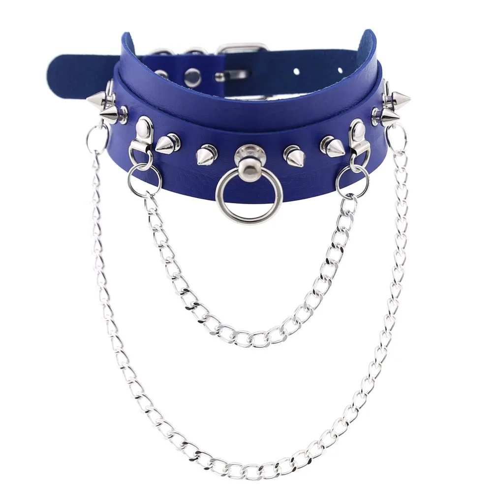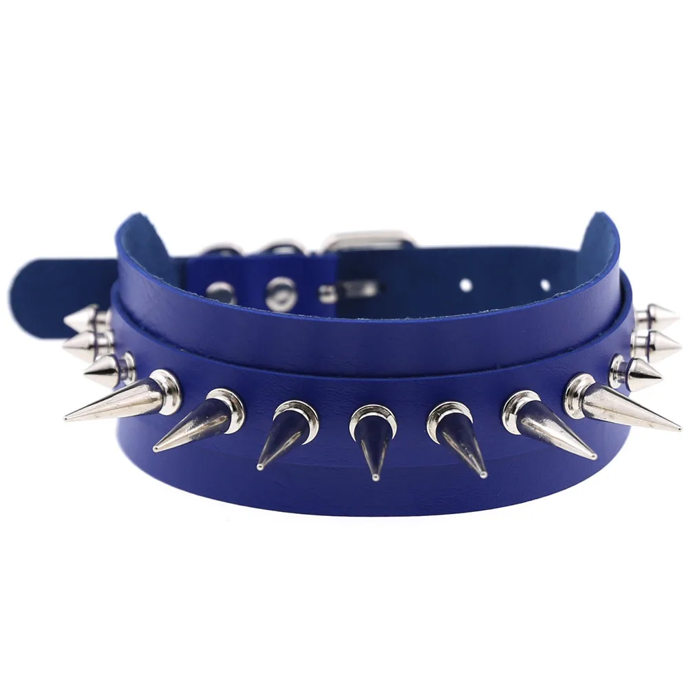 Модное синее ожерелье для косплея в стиле Харадзюку, панк-рок, готика, сексуальное ожерелье из искусственной кожи с сердечками и круглыми шипами, ожерелье-чокер, аксессуары для тела