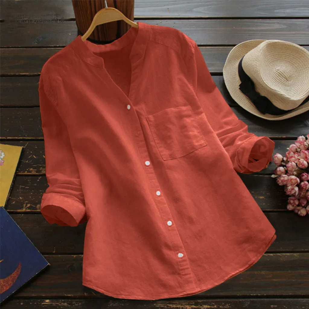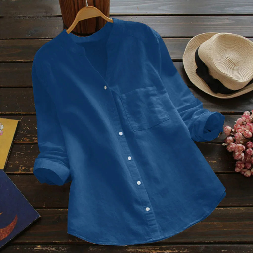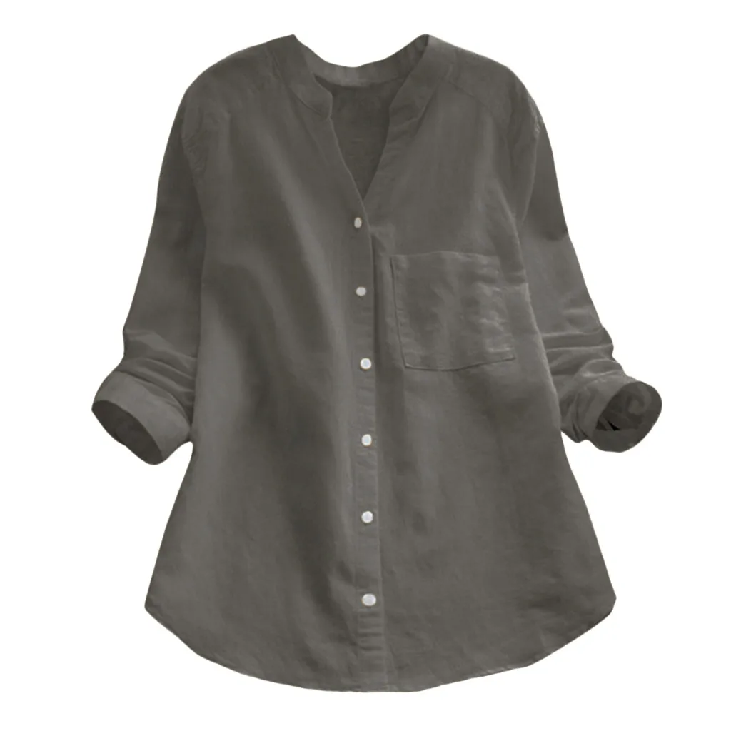 Блузка женская с длинным рукавом, на пуговицах, из хлопка и льна
