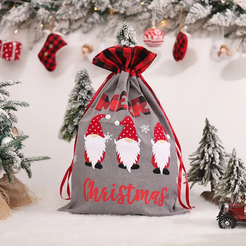 Рождественский подарок, большая сумка, милый Рождественский льняной...