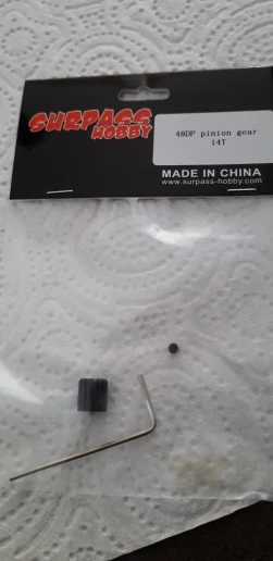 Received in 10 days. Got an allen wrench with the order which is nice for people who don't have one. The screws are not assembled so it's easy to lose them, be careful. On one of the three pinions I ordered I had some trouble inserting the screw, the fit was too tight. It worked out in the end with a bit of patience.