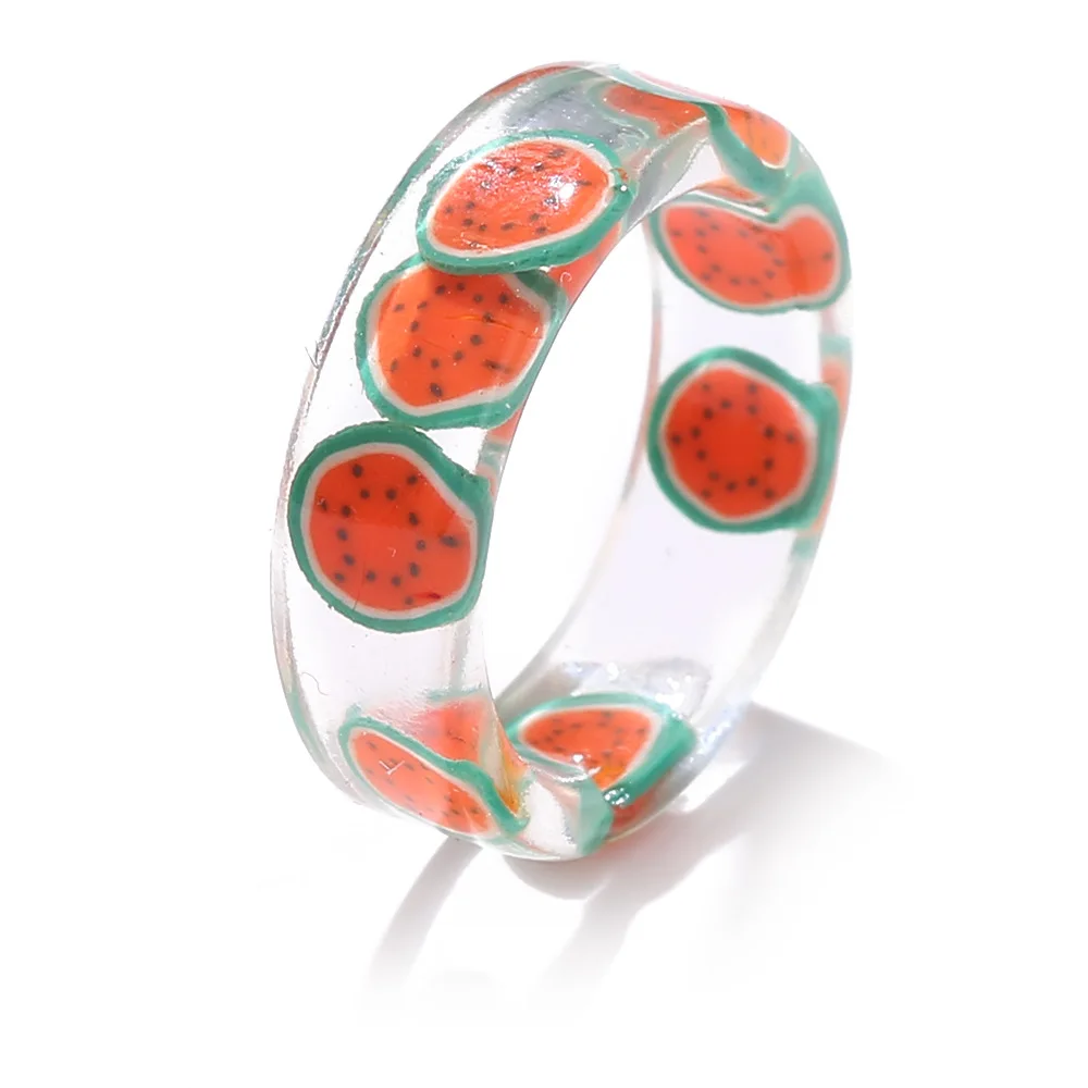 Кольцо женское, прозрачное, из акриловой смолы, с клубникой, лимоном